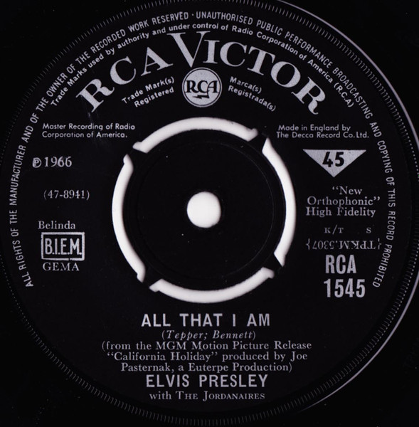 Label: RCA Victor – 47-0651 Format: Vinyl, 7", 45 RPM, Single Country: Germany Released: 1966 Manufactured By – TELDEC »Telefunken-Decca« Schallplatten GmbH Rights Society (Boxed): GEMA |