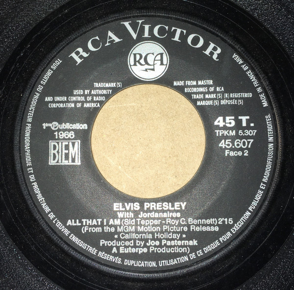 | Label: RCA Victor – 45.607 Format: Vinyl, 7", 45 RPM, Single, Mono Country: France Released: 1966 Made By – AREA |