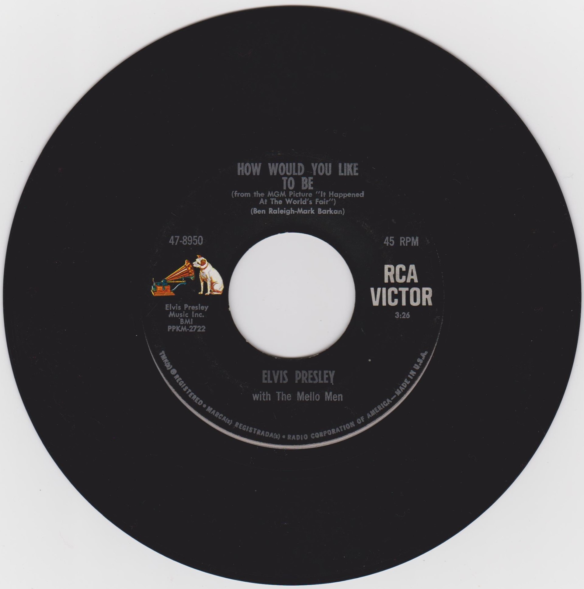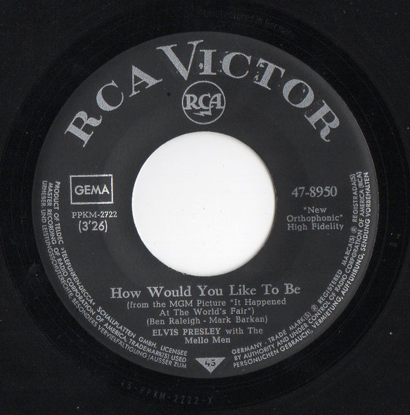 | Label: RCA Victor – 47-8950 Format: Vinyl, 7", 45 RPM, Single Country: Germany Released: 1966 Lacquer Cut At – TELDEC-Studio, Hamburg How Would You Like To Be is from the MGM picture "It Happened At The World's Fair". Rights Society (Boxed): GEMA |
