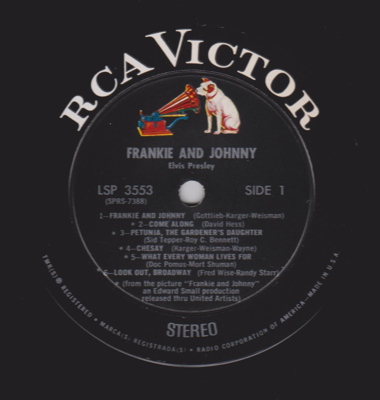 AND JOHNNY (LP) (US) RCA LSP / LPM 3553 ( See reissue in 1976 ) Released: April 1966 Side 1 Frankie And Johnny Come Along * Petunia, The Gardener's Daughter ** Chesay *** What Every Woman Lives For ** Look Out, Broadway ** Side 2 Beginner's Luck * Down By The Riverside / When The Saints Go Marching In * Shout It Out * Hard Luck **** Please Don't Stop Loving Me Everybody Come Aboard ** * Recorded: