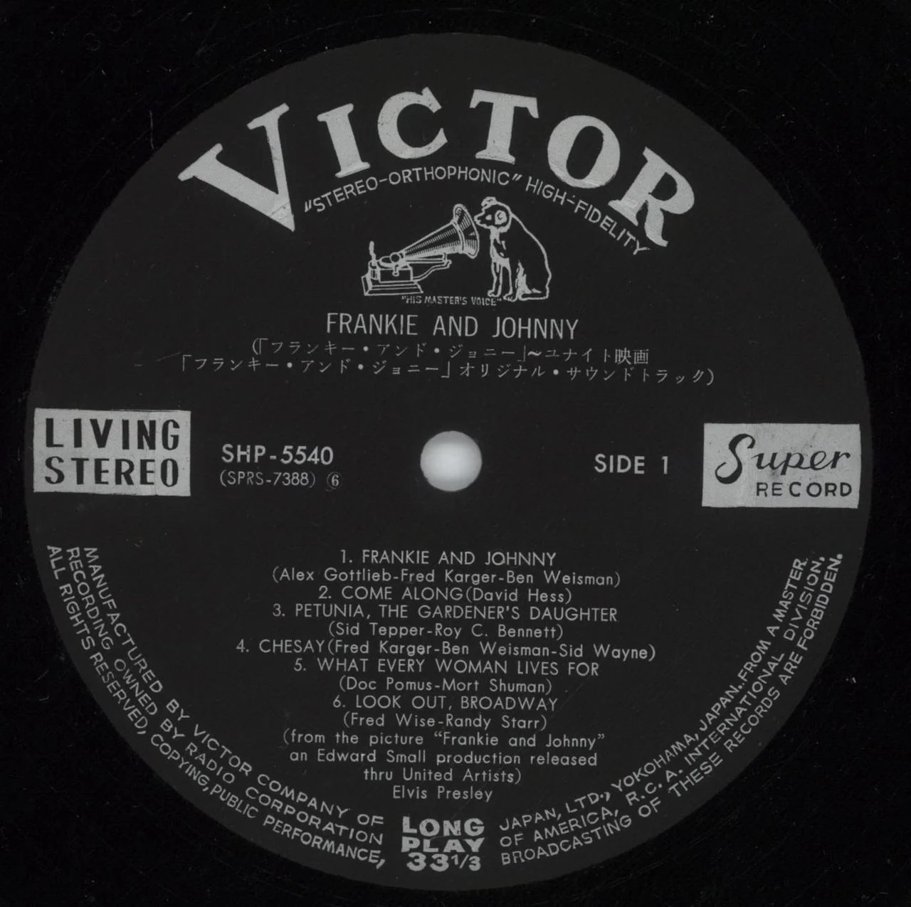 | Label: Victor – SRA-5060 Format: Vinyl, LP, Album, Stereo Country: Japan Released: 1966 Manufactured By – Victor Company Of Japan, Ltd. Backing Vocals – The Jordanaires (tracks: A1 to A4, B2 to B4) In gatefold sleeve with Japanese liner notes and English lyrics on the inside. Track timings taken from the inside cover although A3 is considerably longer than 1:13. No mono version was released in Japan. Matrix / Runout (Runout Side A - stamped): TPRS 3846 111 |