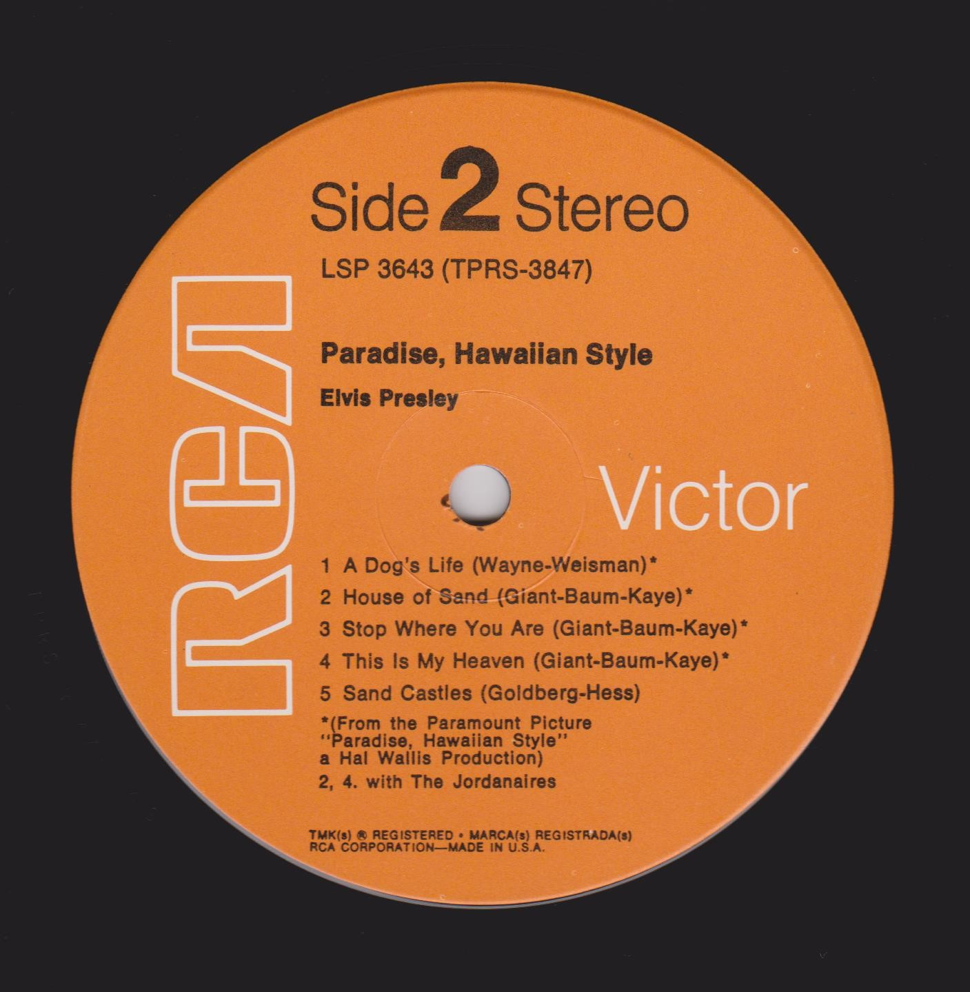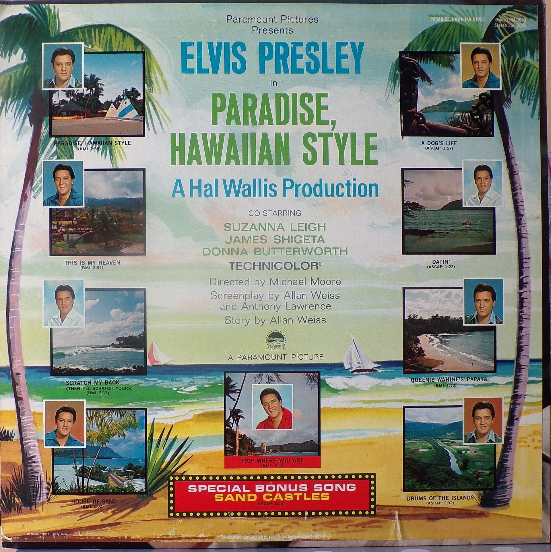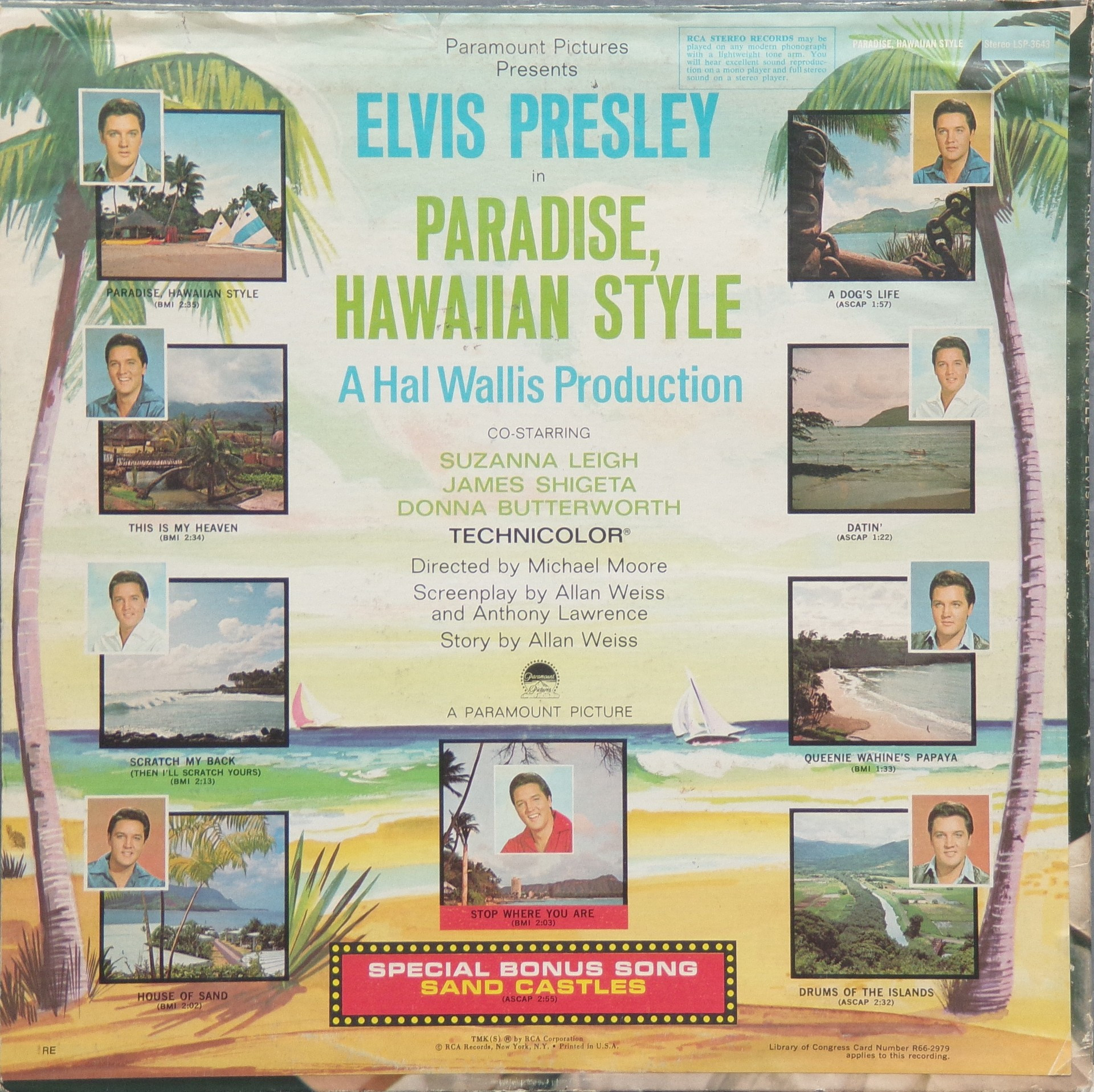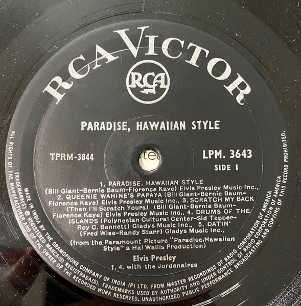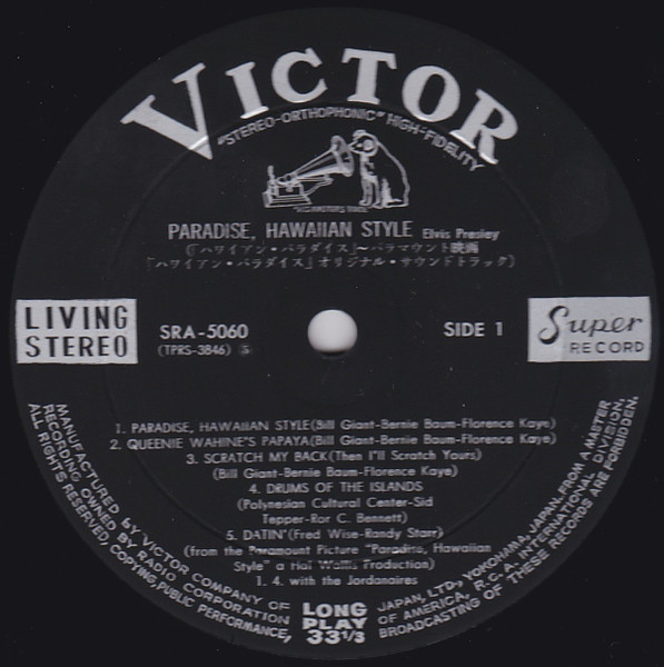HAWAIIAN STYLE (LP) (US) RCA LSP / LPM 3643 Released: June 1966 Side 1 Paradise Hawaiian Style *** Queenie Wahine's Papaya *** Scratch My Back ** Drums Of The Islands * Datin' *** Side 2 Dog's Life *** House Of Sand ** Stop Where You Are ** This Is My Heaven * Sand Castles ** * Recorded: Radio Recorders,