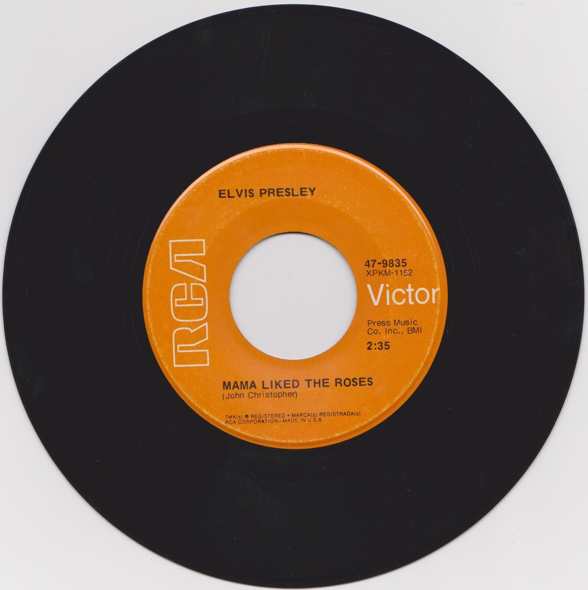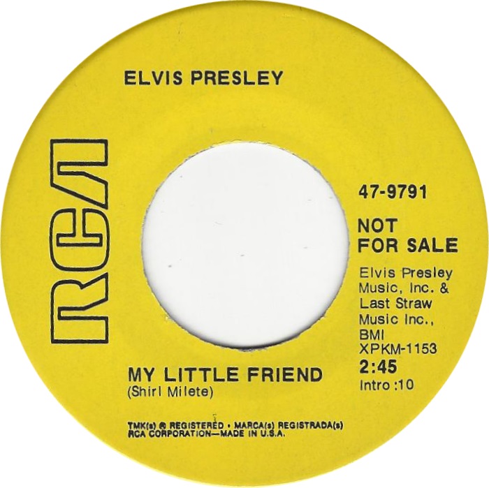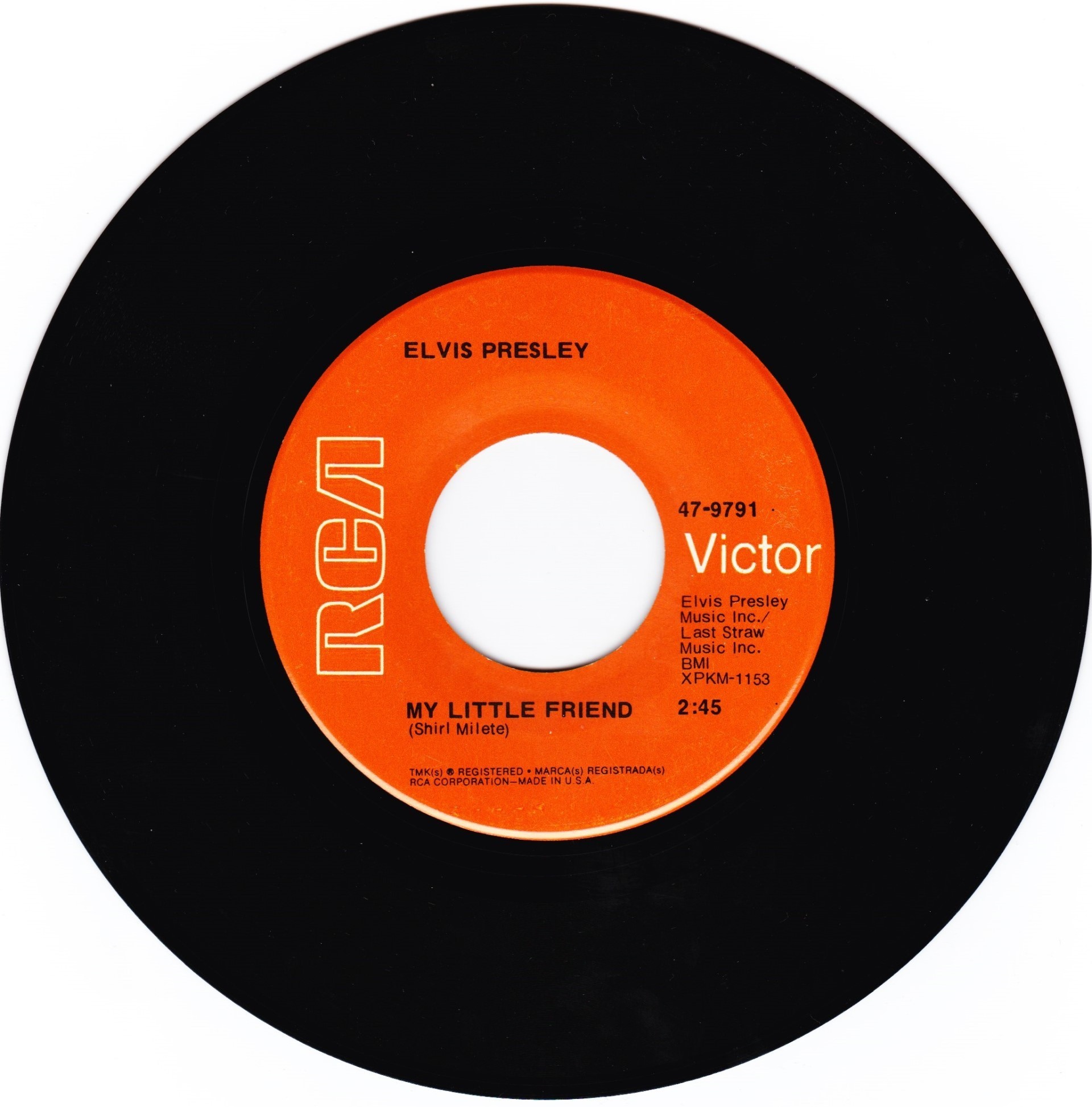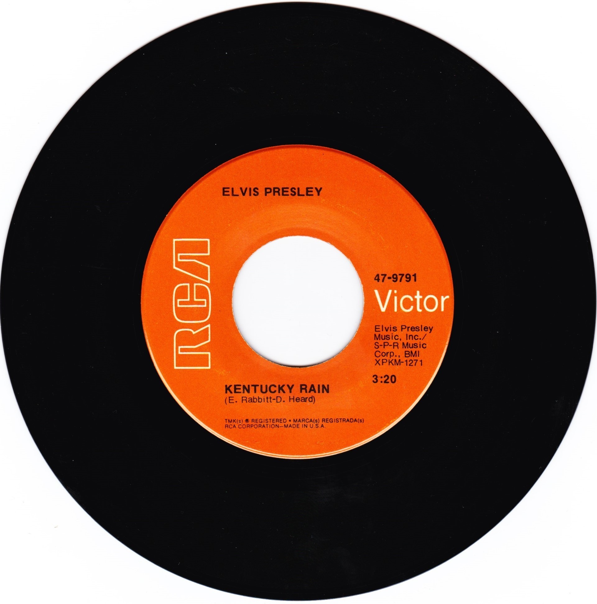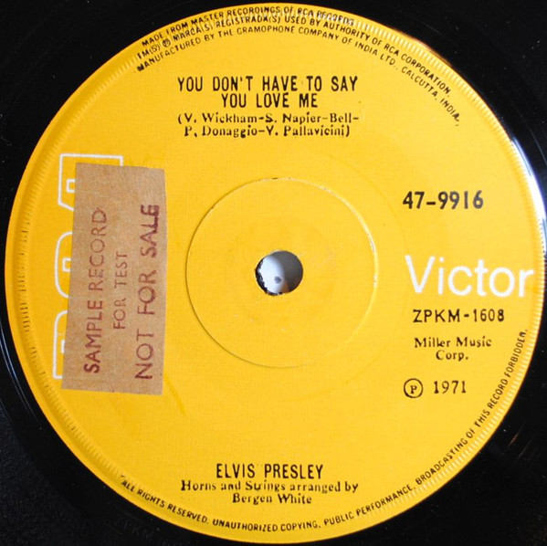 | Label: RCA Victor – 47-9791, RCA – 47-9791 Format: Vinyl, 7", 45 RPM, Single Country: India Released: 1970 Manufactured By – The Gramophone Company Of India Ltd. Side A : Elvis Presley Music Inc. / S-P-R Music Corp. Label is RCA Victor on the labels, Matrix / Runout (Label A): XPKM-1271 |