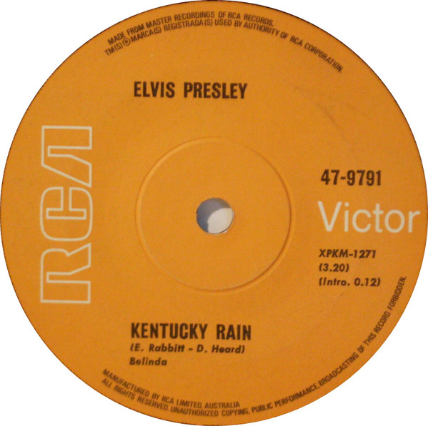 Kentucky Rain ** Catalogue Number : RCA 47 - 9791 Side XPKM 1271 : Kentucky Rain Front Cover : Picture Sleeve. |