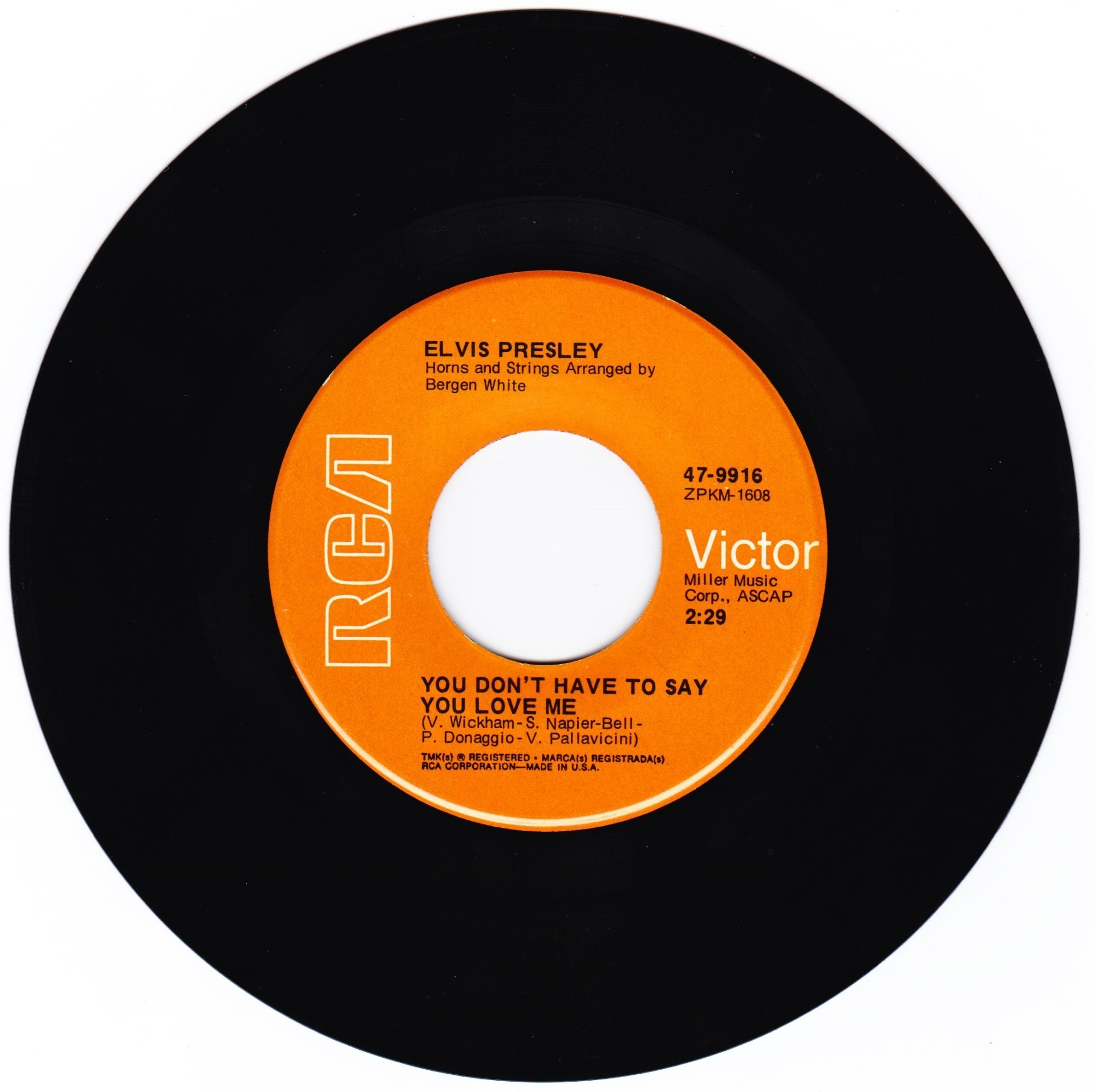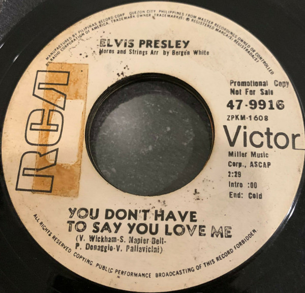 You Don't Have To Say You Love Me Catalogue Number : RCA 47 - 9916 Front Cover : Picture Sleeve |