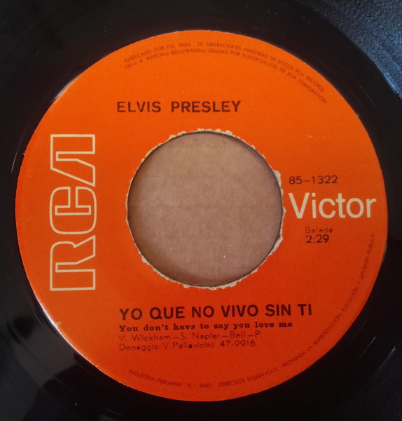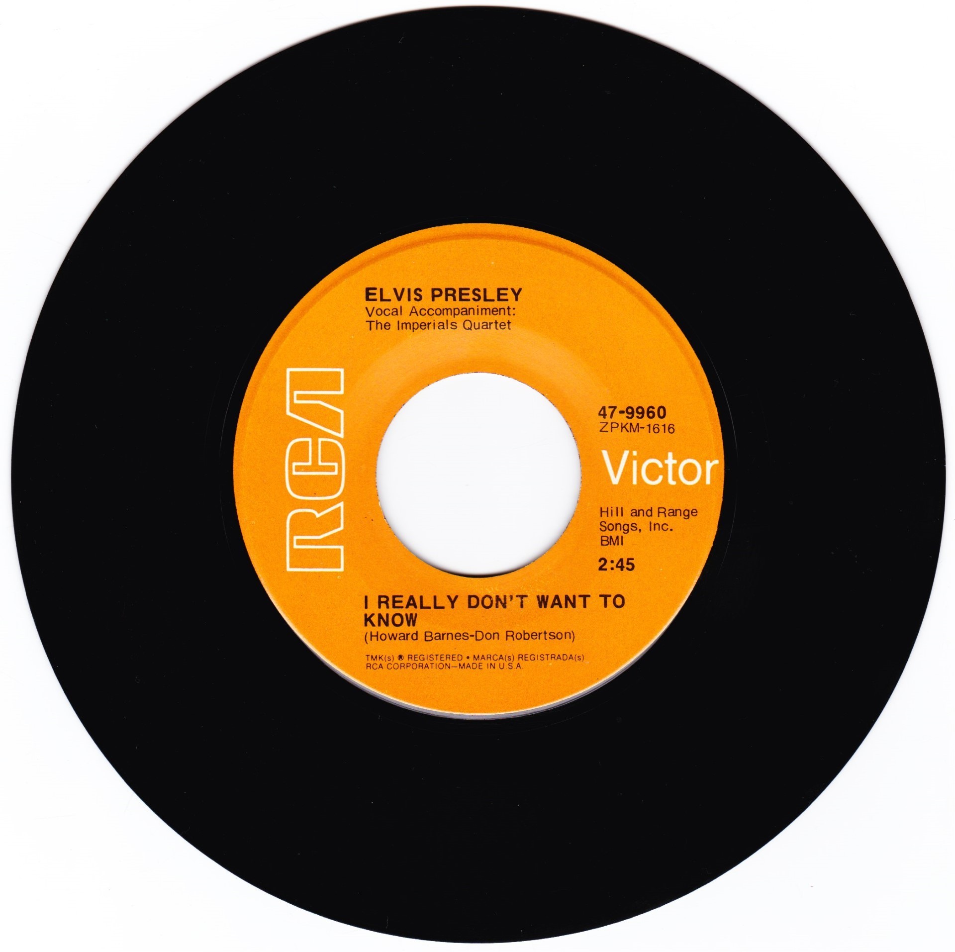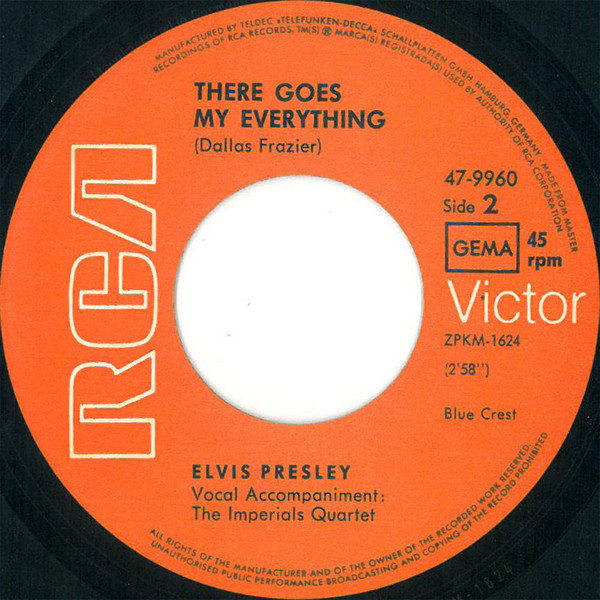 | Label: RCA Victor – 47-9960 Format: Vinyl, 7", 45 RPM, Single, Red Cover Country: Germany Released: 1970 Published By – Hill & Range Accompanied By [Vocal] – The Imperials Quartet* Coming soon ★ New Album Rights Society (Boxed): GEMA |