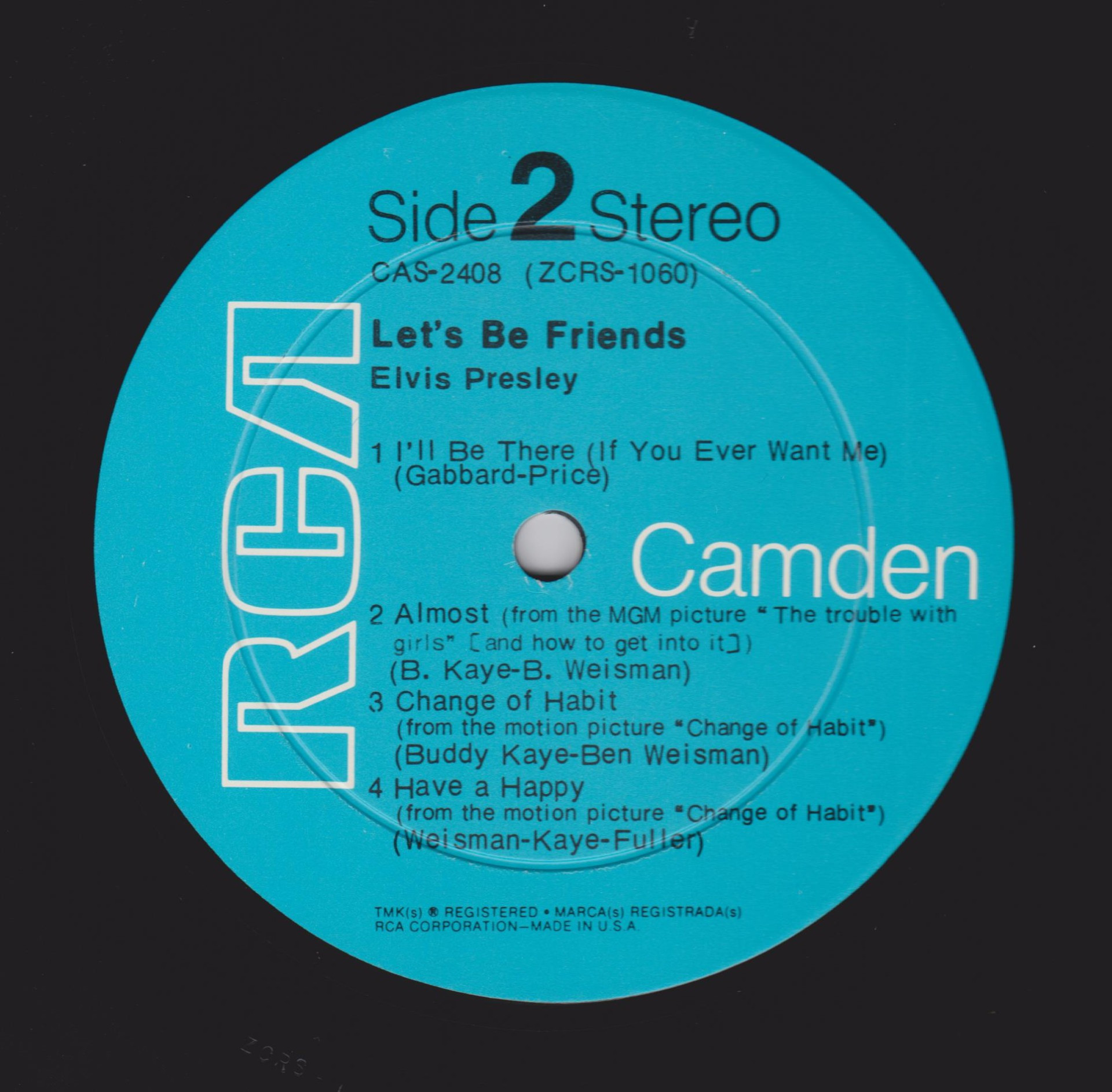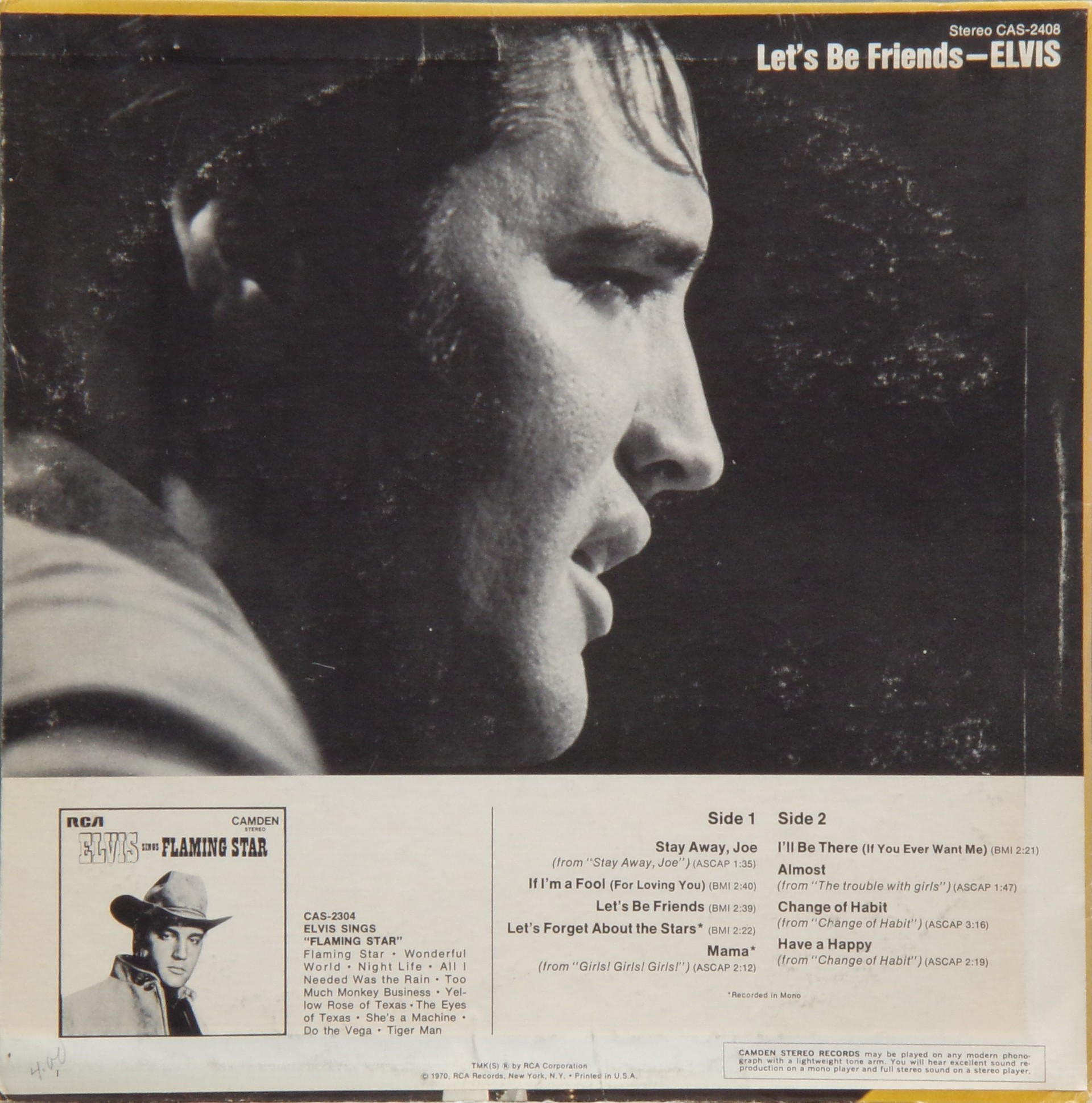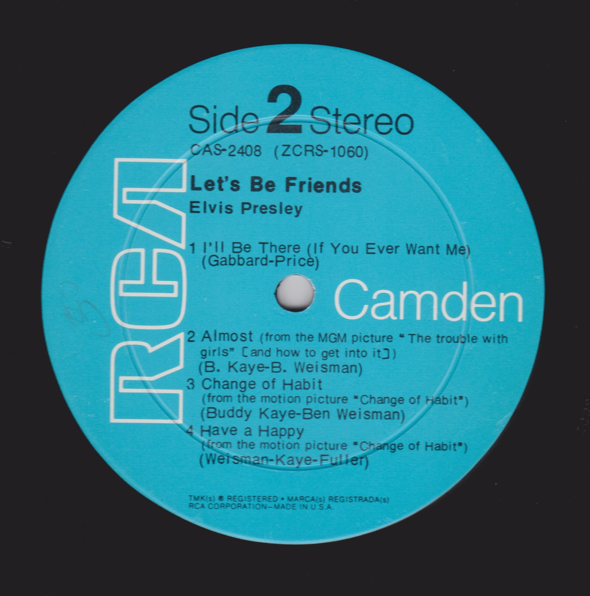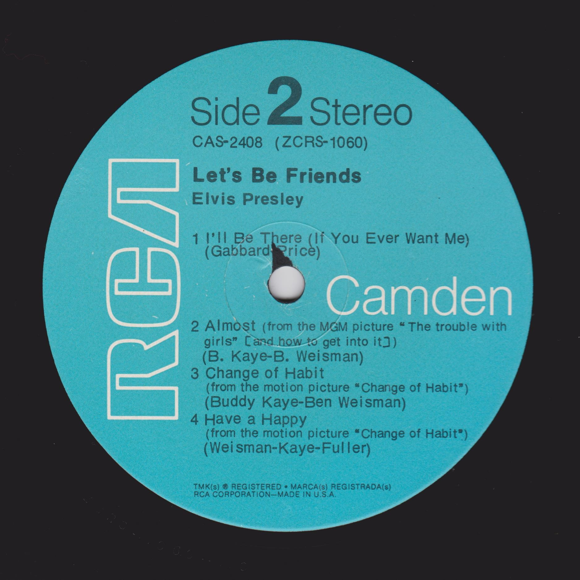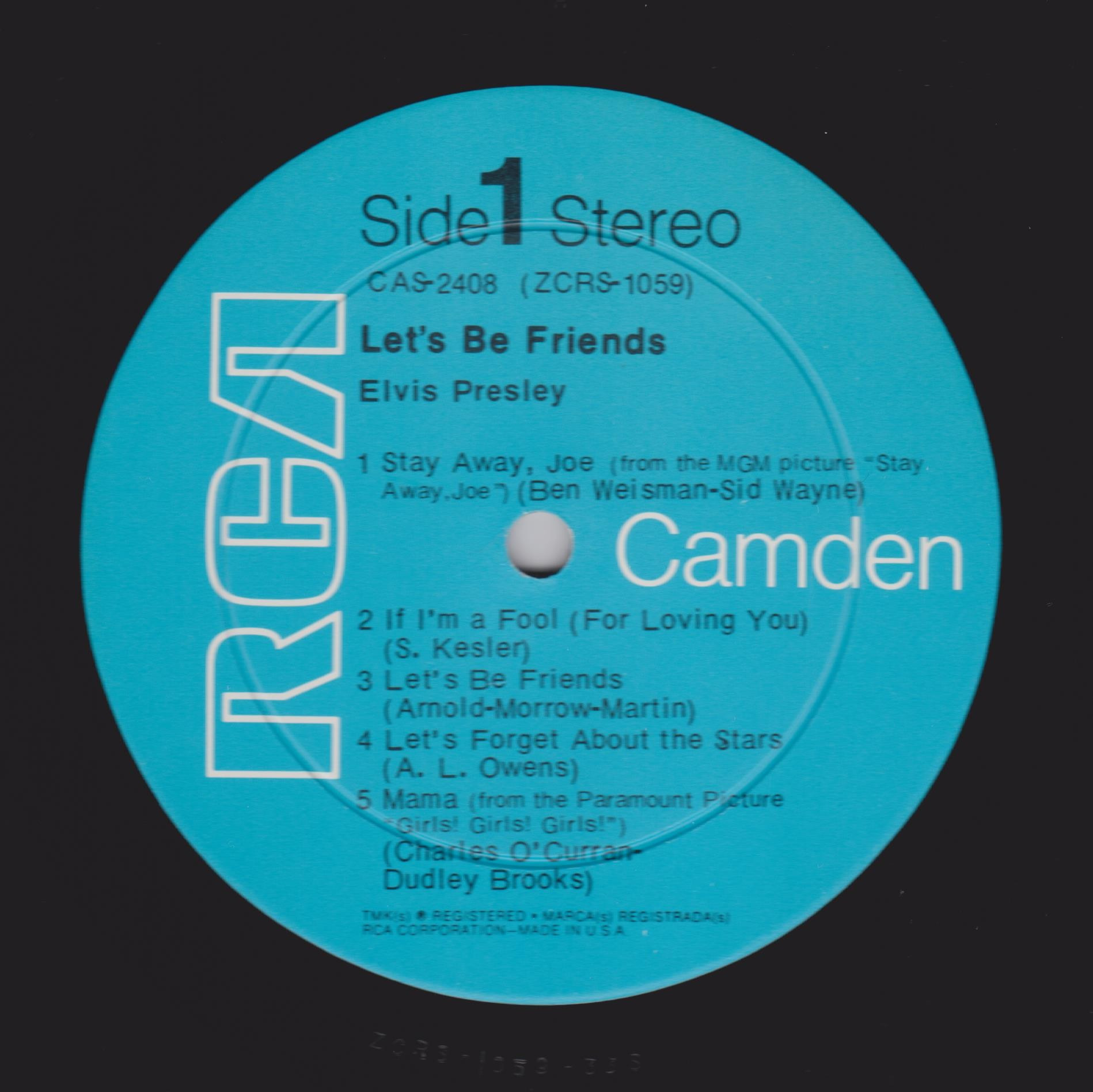 BE FRIENDS (LP) (US) RCA Camden CAS 2408 Released: April 1970 Side 1 Stay Away, Joe (Record Version) ** If I'm A Fool (For Loving You) ****** Let's Be Friends ******* Let's Forget About The Stars **** Mama * Side 2 I'll Be There ***** Almost *** Change Of Habit ******* Have A Happy ******** * Recorded: Radio Recorders,