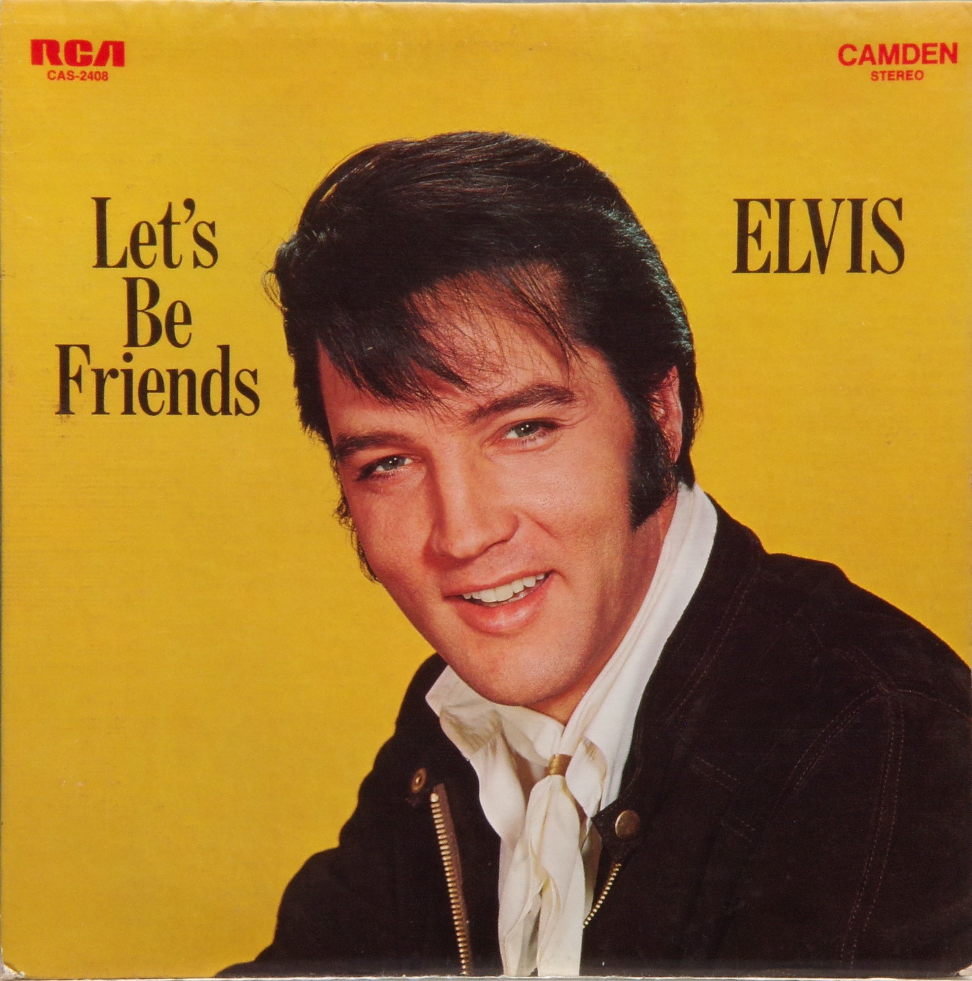 Hollywood, March 28, 1962 Let's Be Friends is the thirty-seventh album by Elvis Presley, released on RCA Camden Records CAS 2408, in April 1970. It is the second Presley budget album to appear on the RCA subsidiary label. It peaked at #105 on the Billboard 200 album chart. It was certified Gold on 7/15/1999 and Platinum on 1/6/2004 by the RIAA. Similar to its predecessor Elvis Sings Flaming Star, Let's Be Friends collects mostly unreleased songs recorded for Presley film soundtracks. Given the recent work of the revitalized Presley, in the past the Colonel might have objected to this kind of market saturation, but under the terms of Presley's agreement with RCA, budget albums brought extra cash outside of contract stipulations. Two non-movie outtakes appeared from the winter of 1969 sessions at American Sound Studio in Memphis, "I'll Be There" and "If I'm a Fool (For Loving You)." The songs "Mama," "Let's Forget About The Stars," and "Let's Be Friends" were all recorded for but not used in their respective movies. "Mama" was sung in the film Girls! Girls! Girls! by The Amigos., and Elvis' version first appeared on this album, with an alternate, abridged version included on the compact disc Elvis Double Features: Kid Galahad/Girls! Girls! Girls!. Three tracks originated from Presley's then-current film Change of Habit (including the movie's theme song), making this in essence an enhanced soundtrack release for that film. Like all Presley releases on the budget Camden label, this album has a very short running time, too short for a full-priced album in the 1970s Front Cover : Photo of Elvis. Title to the left. Catalogue