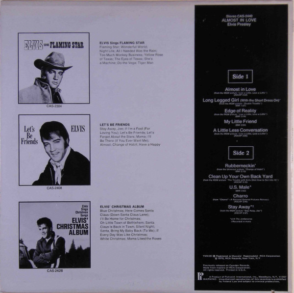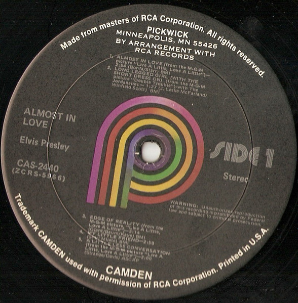 | Label: Pickwick – CAS-2440 Format: Vinyl, LP, Compilation, Reissue, Keel Pressing Country: US Released: 1975 Record Company – Pickwick International, Inc. Previously released on Camden Records. A1, A3, A5 from MGM picture "Live a little, love a little" Official innersleeve with this LP is a "Pickwick" company innersleeve (a white sleeve, with on both sides, in blue lettering, pickwick logo's printed sideways), with on the bottom corner 'Printed in U.S.A.'. Rights Society: BMI. Rights Society: ASCAP Matrix / Runout (Label A-Side): ZCRS-5966 |