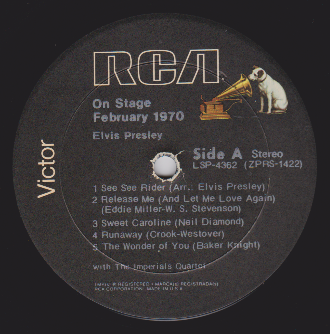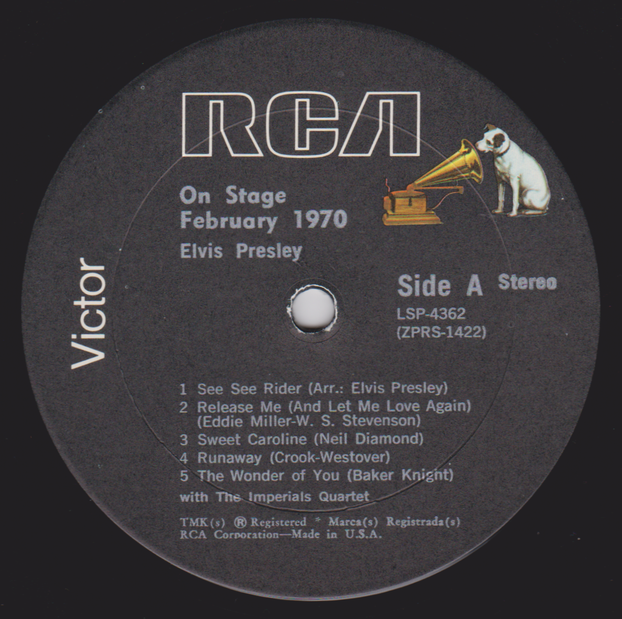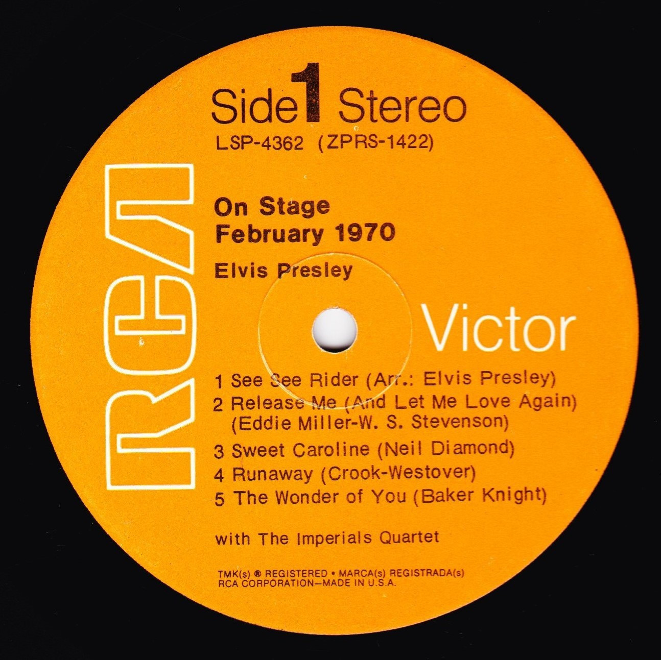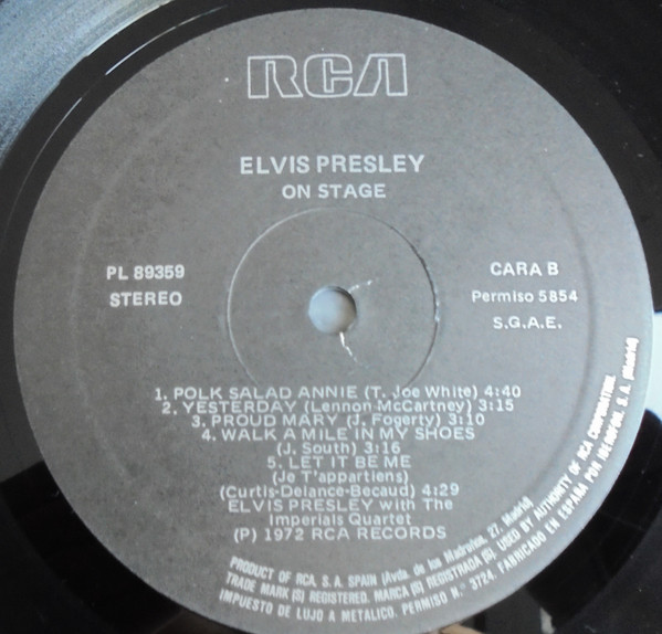 STAGE - FEBRUARY 1970 (LP) (US) RCA LSP 4362 Released: June 1, 1970 Side 1 See See Rider **** Release Me **** Sweet Caroline ** Runaway * Wonder Of You **** Side 2 Polk Salad Annie **** Yesterday * Proud Mary ** Walk A Mile In My Shoes ***** Let It Be Me *** * Recorded: