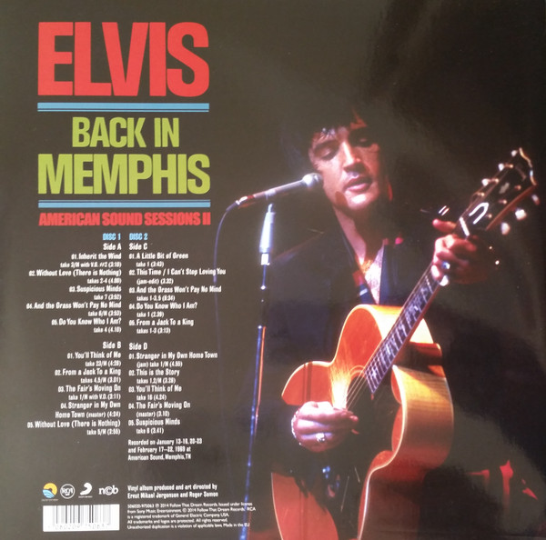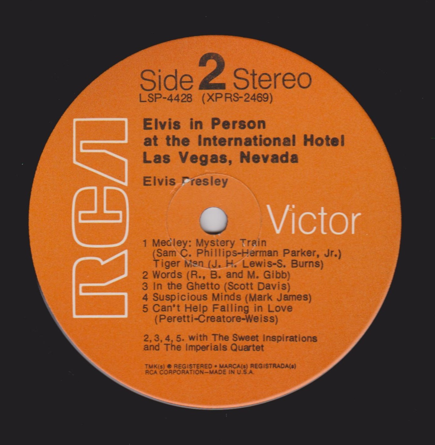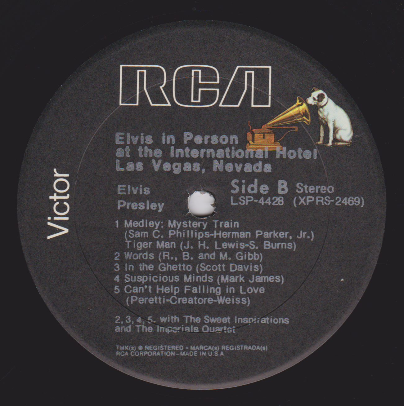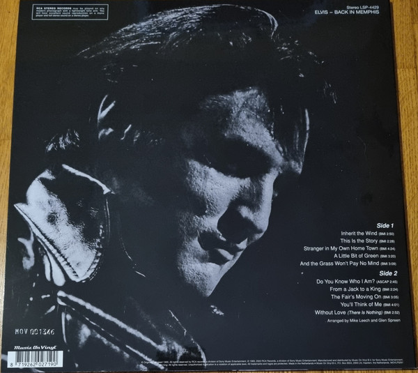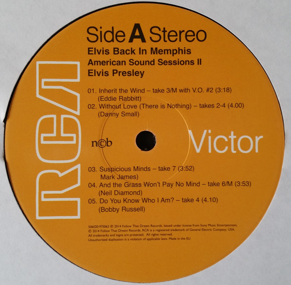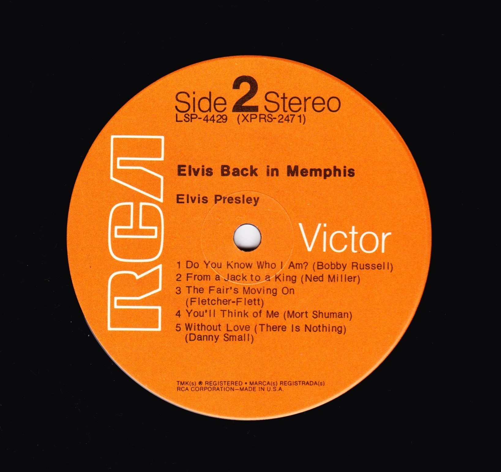 IN MEMPHIS (LP) Brief History : This single LP is the second half of the double album "LSP-6020 From Memphis to Vegas / From Vegas to Memphis". In November 1970, RCA reissued this as an individual album. It has been issued separately ever since. Label: RCA Victor – LSP-4429 1st pressing with orange labels. Matrix / Runout (Side A Label): XPRS 2470 |
