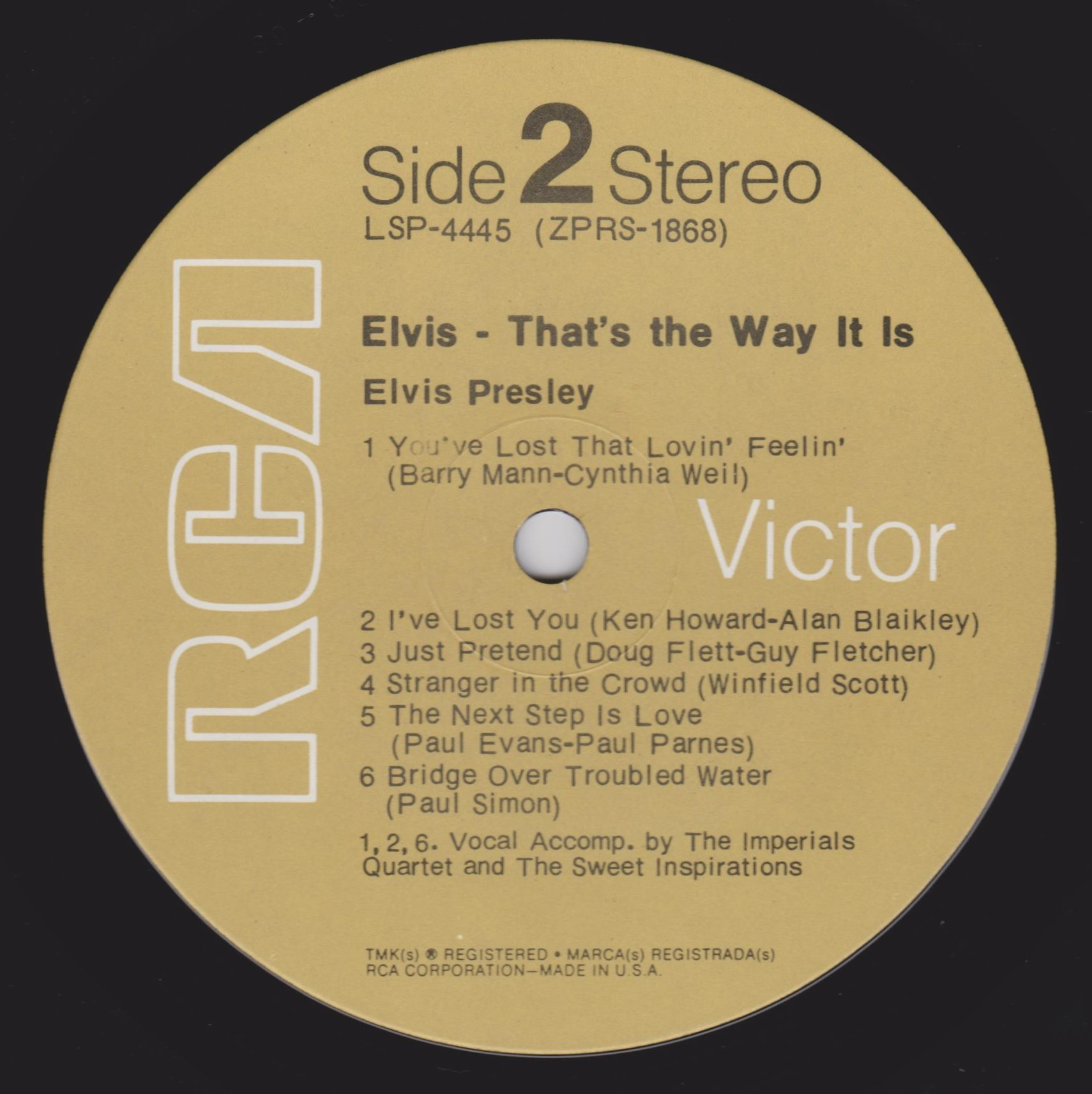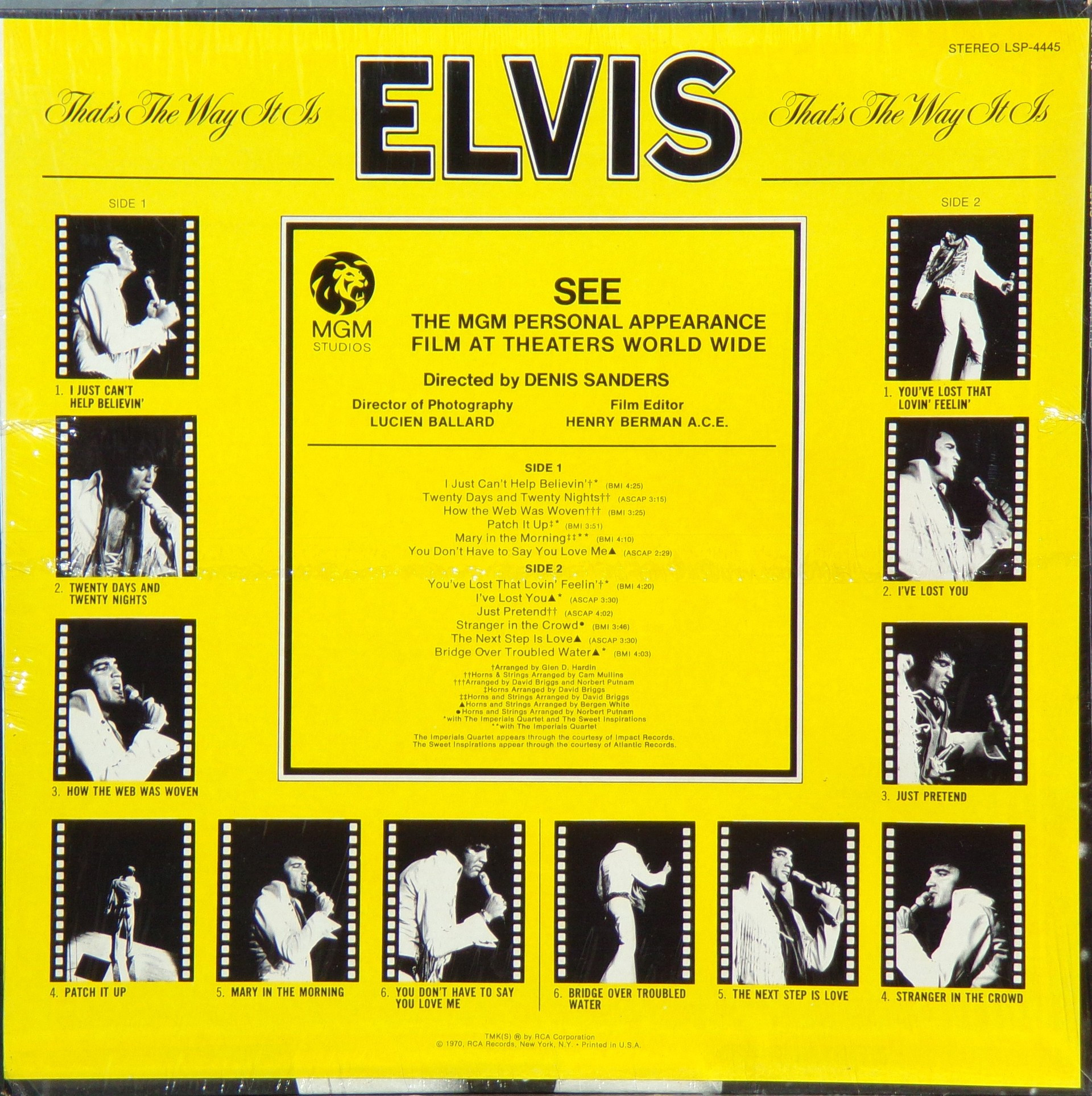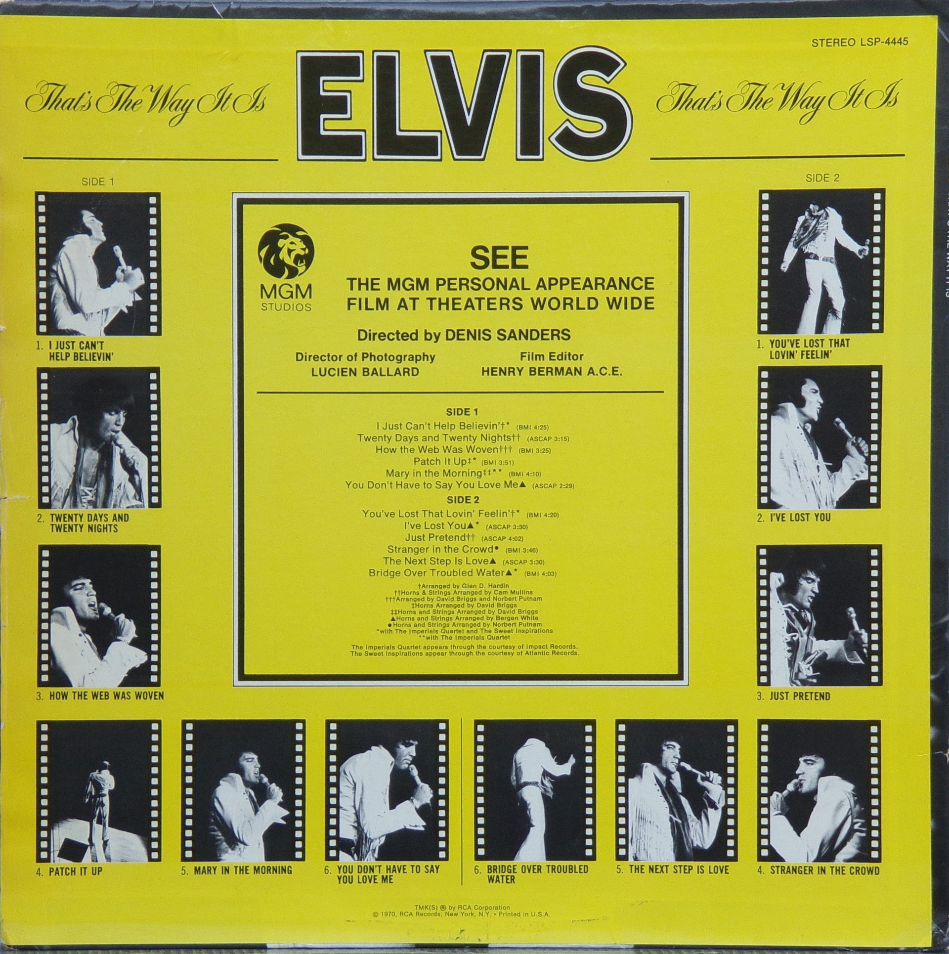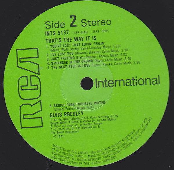 - THAT'S THE WAY IT IS (LP) (US) RCA LSP 4445 Released: November 1970 Side 1 I Just Can't Help Believin' **** Twenty Days and Twenty Nights * How The Web Was Woven ** Patch It Up ***** Mary In The Morning ** You Don't Have To Say You Love Me Side 2 You've Lost That Lovin' Feelin' ****** I've Lost You **** Just Pretend *** Stranger In The Crowd ** Next Step Is Love Bridge Over Troubled Water ** *