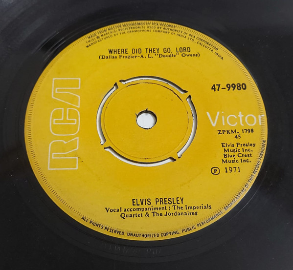 Label: RCA Victor – 47-9980 Format: Vinyl, 7", 45 RPM, Single Country: India Released: 1971 |