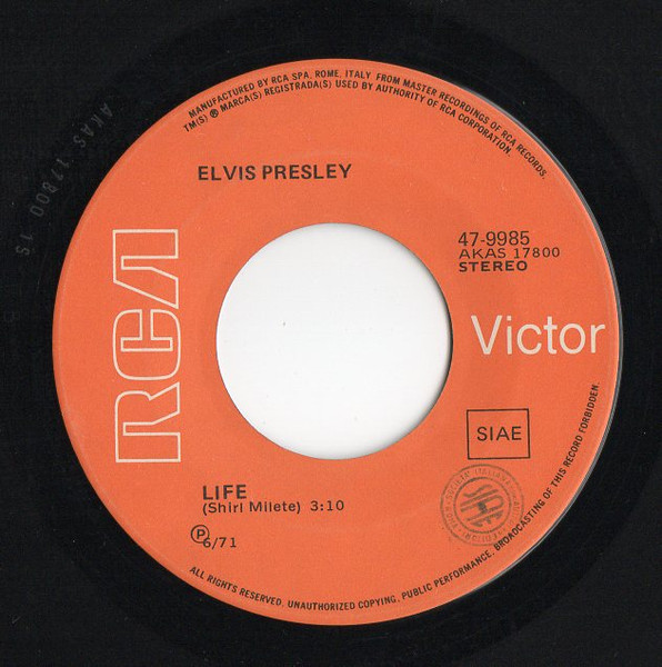 | Label: RCA Victor – 49840, RCA Victor – 74-0572 Series: Hit-Parade Format: Vinyl, 7", 45 RPM, Single, Stereo Country: France Released: 1971 Printed By – S.I.A.T. RCA 6, Rond-Point des Champs Elysées - Paris Side A edited for single use from the "Elvis Sings