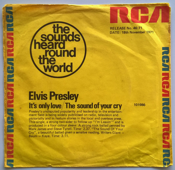| Label: RCA – 101986, RCA Victor – 101986 Series: The Sounds Heard Round The World – 46:71 Format: Vinyl, 7", 45 RPM, Single, Promo Country: Australia Released: 18 Nov 1971 Published By – Sydney Tree Not For Sale - Sample Record overprint on labels Promo only RCA info sleeve Publishers RCA on the sleeve, RCA Victor on labels. Matrix / Runout (Label side A): APKM-1287* |