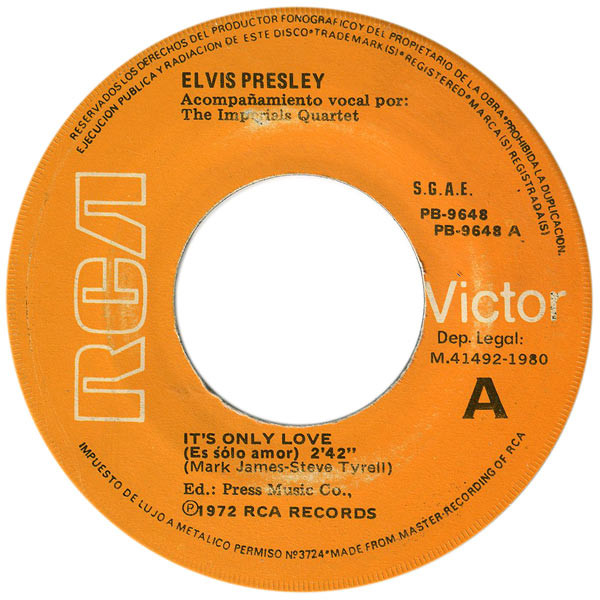 | Label: RCA Victor – 3-10640 Format: Vinyl, 7", 45 RPM, Single, Promo, Stereo Country: Spain Released: 1971 A: Only Believe = Solo Creer Manufactured By – RCA, S.A. White background label Promo. Spanish titles on front cover, back cover and labels Publishers Rights Society: SGAE |