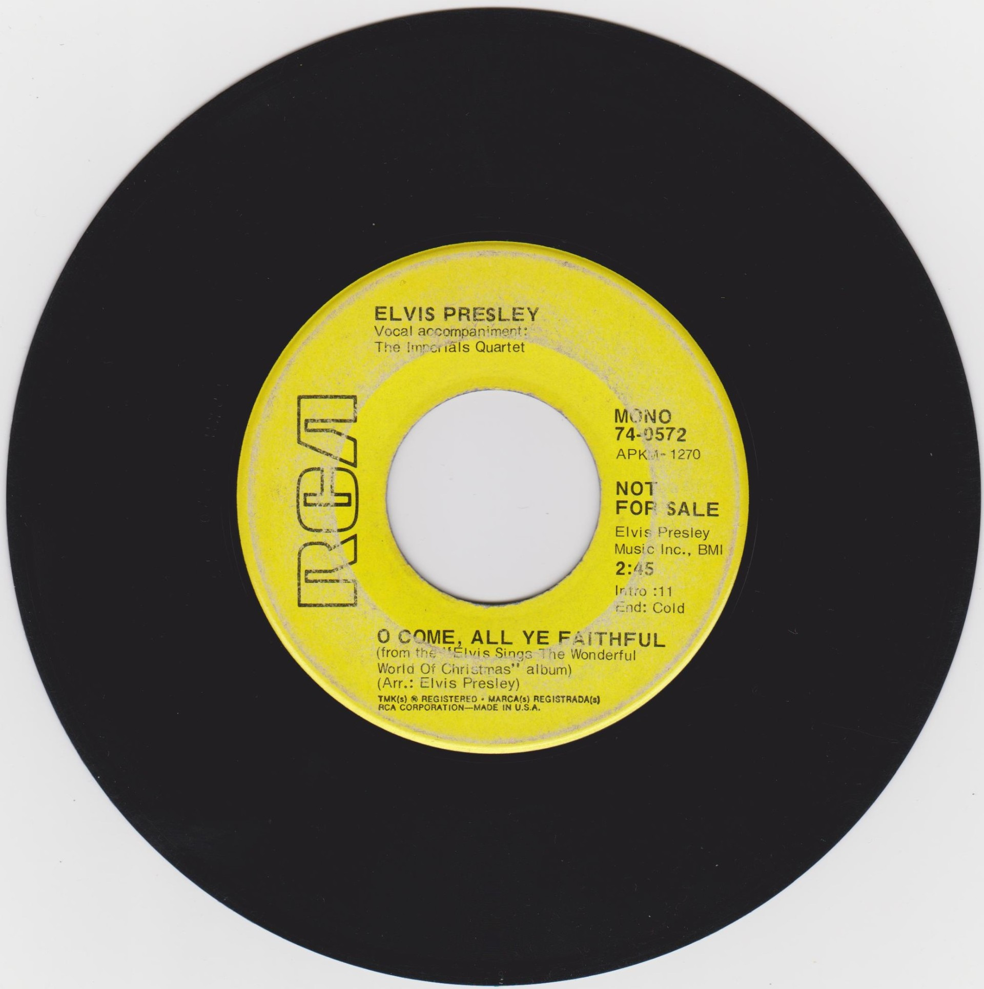 No Picture Sleeve with this release. Label : Yellow with black lettering. Pressing Plant : Indianapolis Matrix Number Side 1 : AP - KM 1849 - 1S A1 (Machine Stamped) Matrix Number Side 2 : AP - KM 1270 - 1S A1 (Machine Stamped) *NOTE* "Not For Sale" copy. |
