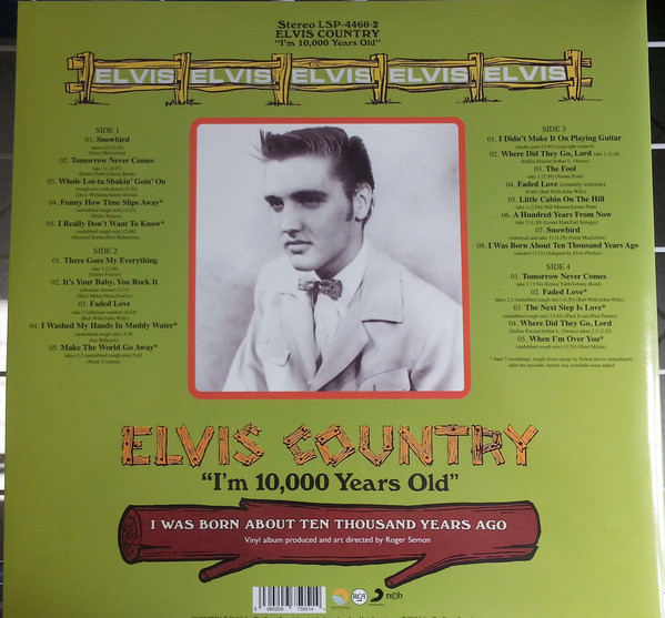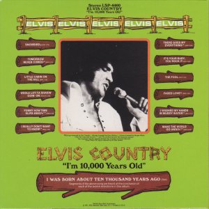 June 4, 1970 Brief History : Elvis Country (I'm 10,000 Years Old) is the thirty-seventh studio album by Elvis Presley, released on RCA Records (LSP 4460 in January 1971). Recorded at RCA Studio B in Nashville, it reached #12 on the Billboard 200. It was certified Gold on 12/1/1977 by the RIAA. It peaked at #6 in the United Kingdom, selling over one million copies worldwide. The lead single for the album, "I Really Don't Want to Know" b/w "There Goes My Everything" was released on December 8, 1970 and peaked at #21 on the Billboard Hot 100. The bulk of the album came from five days of recording sessions in June 1970 which yielded 35 usable tracks. Presley performed every track "live", recording his vocal part in the same take as the band as was standard practice for him. Eight tracks from the session were released two months earlier in November 1970 on the That's the Way It Is album. During the sessions, Presley and producer Felton Jarvis realized they had several country songs in hand, and decided to record several more to create a full album of country material. Needing two more satisfactory tracks, Elvis returned to the same studio in September where he recorded "Snowbird" and a manic, one-take version of "Whole Lotta Shakin' Goin On." Along with his second LP, Elvis' Christmas Album, Elvis Is Back!, and From Elvis in Memphis, "Elvis Country" stands as one of Presley's cohesive musical works - the closest he came to concept albums, a mere handful from his large catalogue. Nearly every style of country music is represented; bluegrass, honky tonk, Western swing, rockabilly, countrypolitan, and even the then-nascent "outlaw" movement. Snippets of the song "I Was Born About Ten Thousand Years Ago" act as a bridge between each track to enhance the sense of continuity. After this album, Presley would return to his usual practice of recording a seemingly random batch of songs on each trip to the recording studio, letting his producer assemble them into albums. Details : |