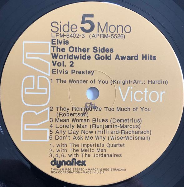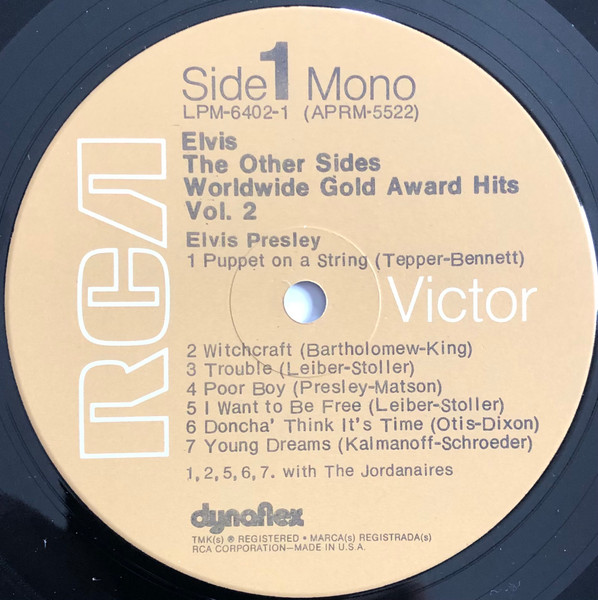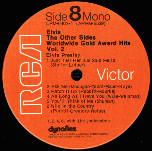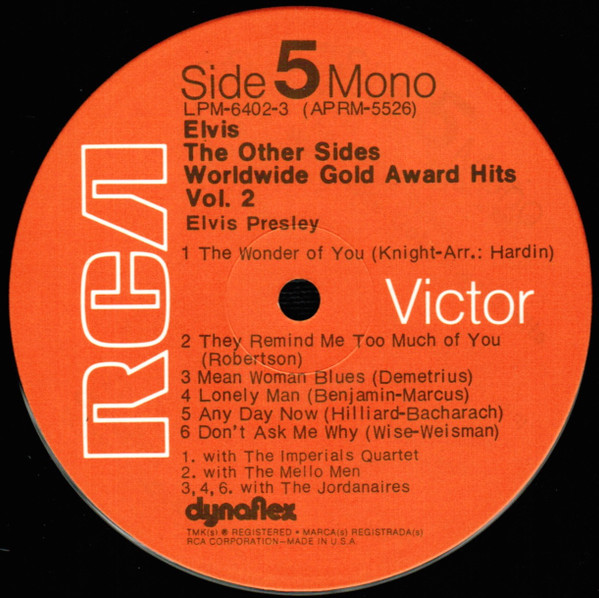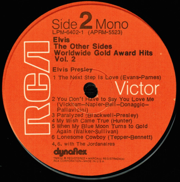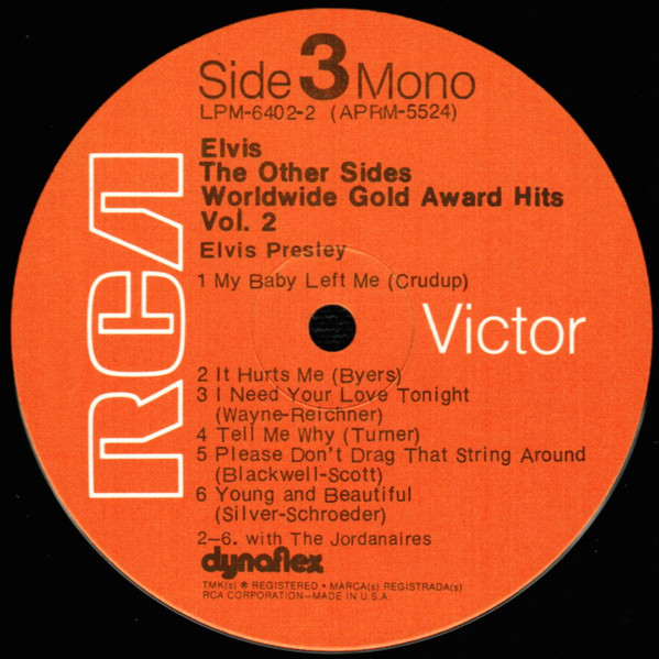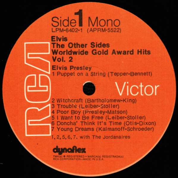 Sides Brief History : The Other Sides - Elvis Worldwide Gold Award Hits Vol. 2 is a compilation album by Elvis Presley, released in August 1971. It was certified Gold on July 15, 1999 by the RIAA. Orange Label: Details : |