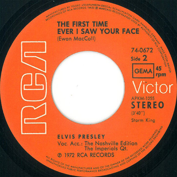 | Label: RCA Victor – 74-0672 Format: Vinyl, 7", 45 RPM, Single Country: Germany Released: 1972 Published By – Acuff-Rose Rights Society: GEMA |