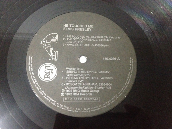 mbH, form Master Recordings of RCA Back cover differs from later re-releases; Smaller tracklist and with a listing of all Elvis’ sacred songs. Rights Society: GEMA |