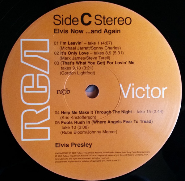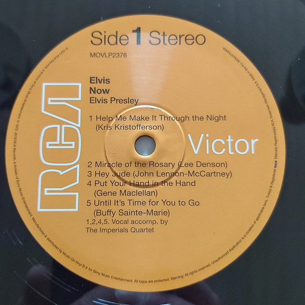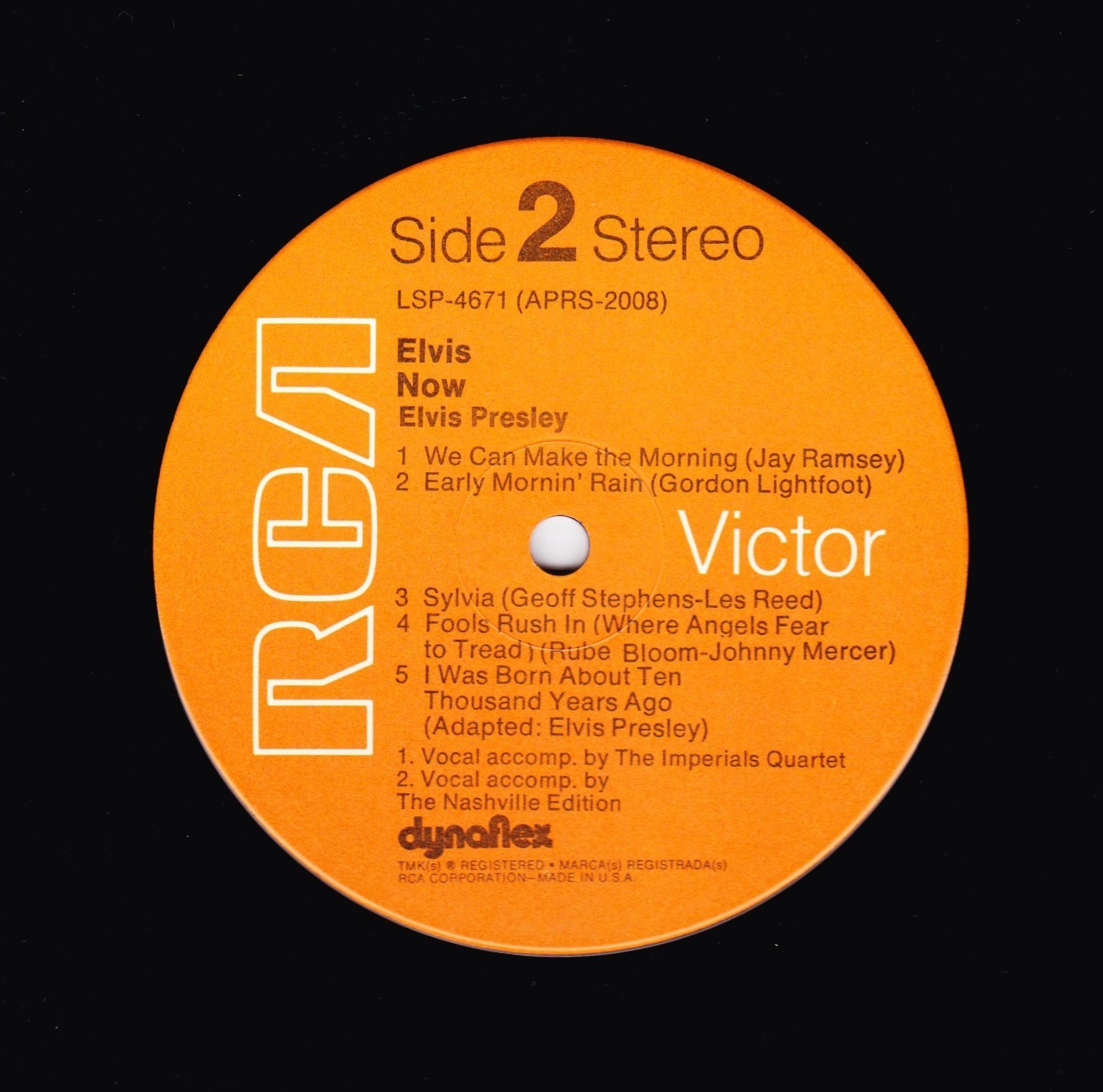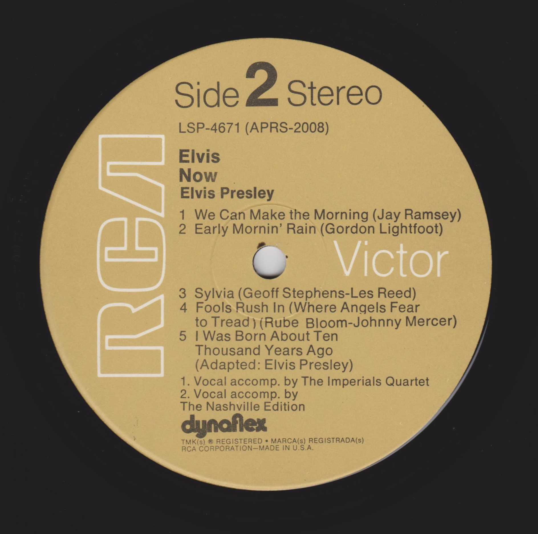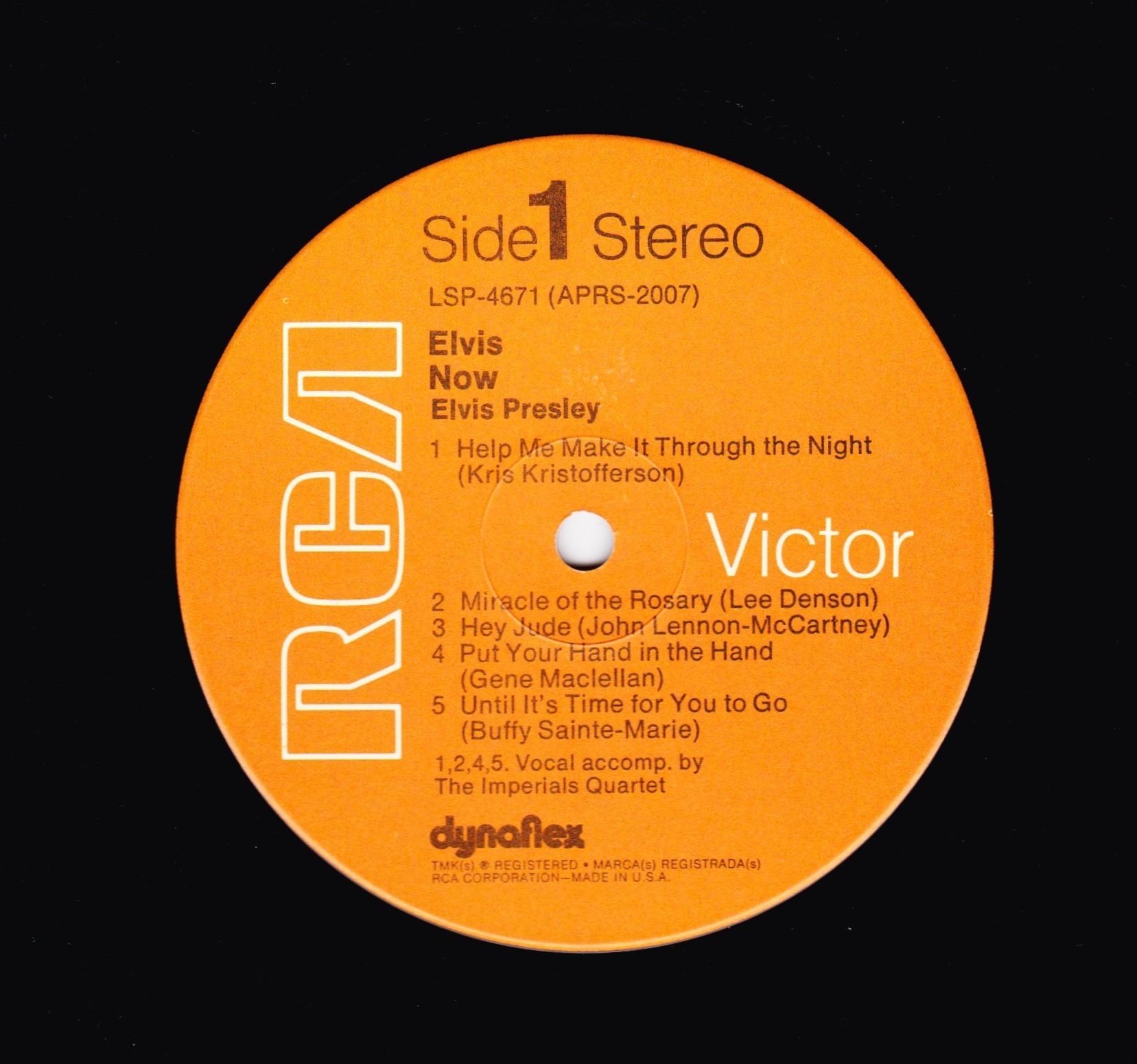 NOW (LP) (US) RCA LSP 4671 Released: February 1972 Side 1 Help Me Make It Through The Night ****** Miracle Of The Rosary ***** Hey Jude * Put Your Hand In The Hand ********* Until It's Time For You To Go ****** Side 2 We Can Make The Morning ******** Early Mornin' Rain **** Sylvia *** Fools Rush In (Where Angels Fear To Tread) ******* I Was Born About Ten Thousand Years Ago ** * Recorded: American Studios, Memphis, January