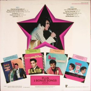 | Front Cover : Title on top. Catalogue number top right. Rear Cover : Advertising 2 Elvis Worldwide box sets. Catalogue number top right. Printed in U.S.A. bottom centre. Label : Orange. Dynaflex vinyl. Side 1 : Stereo at top. Side 2 : Stereo at top. Pressing Plant : Rockaway (Hand Etched) Matrix Number Side 1 : APRS - 2007 - 3S A2C (Hand Etched) Matrix Number Side 2 : APRS - 2008 - 3S A2B (Hand Etched) *NOTE* Standard front cover issue no promotional sticker. |