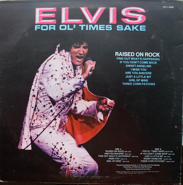 ON ROCK (LP) (US) RCA APL1 0388 Released: October 1973 Side 1 Raised On Rock Are You Sincere ***** Find Out What's Happening ** I Miss You ***** Girl Of Mine *** Side 2 For Ol' Times Sake If You Don't Come Back * Just A Little Bit ** Sweet Angeline **** Three Corn Patches * * Recorded: