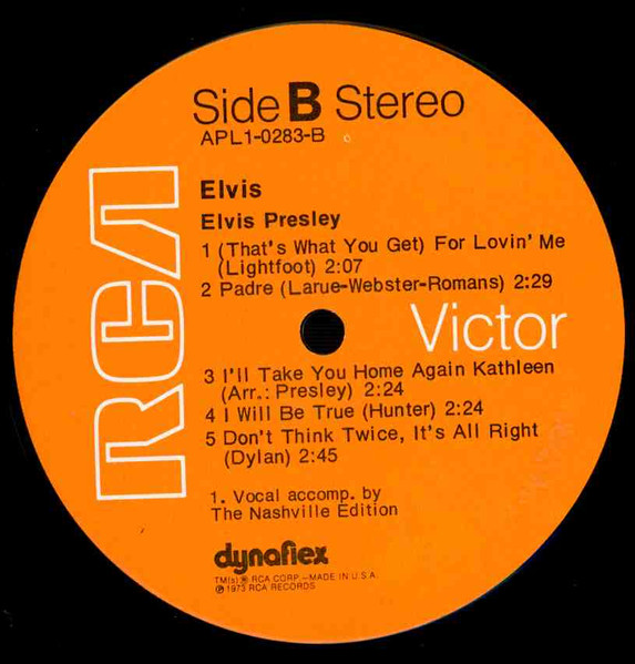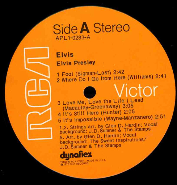 (LP) (US) RCA APL1 0283 Released: July 1973 Side 1 Fool Where Do I Go From Here ******* Love Me, Love The Life I Lead ***** It's Still Here **** It's Impossible ****** Side 2 For Lovin' Me * Padre ** I'll Take You Home Again Kathleen **** I Will Be True **** Don't Think Twice, It's All Right *** *