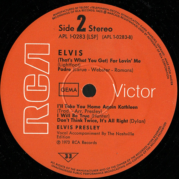 Victor – APL 1-0283 (LSP) Format: Vinyl, LP, Album Country: Germany Phonographic Copyright ? – RCA Records The track list on the back cover does not show the order. Text says: See labels for sequence. Orange labels, ver. o2, used 1970-1974. APL1-0283 (LSP) on front cover and spine. RCA on cover and RCA Victor on labels. Rights Society: GEMA |