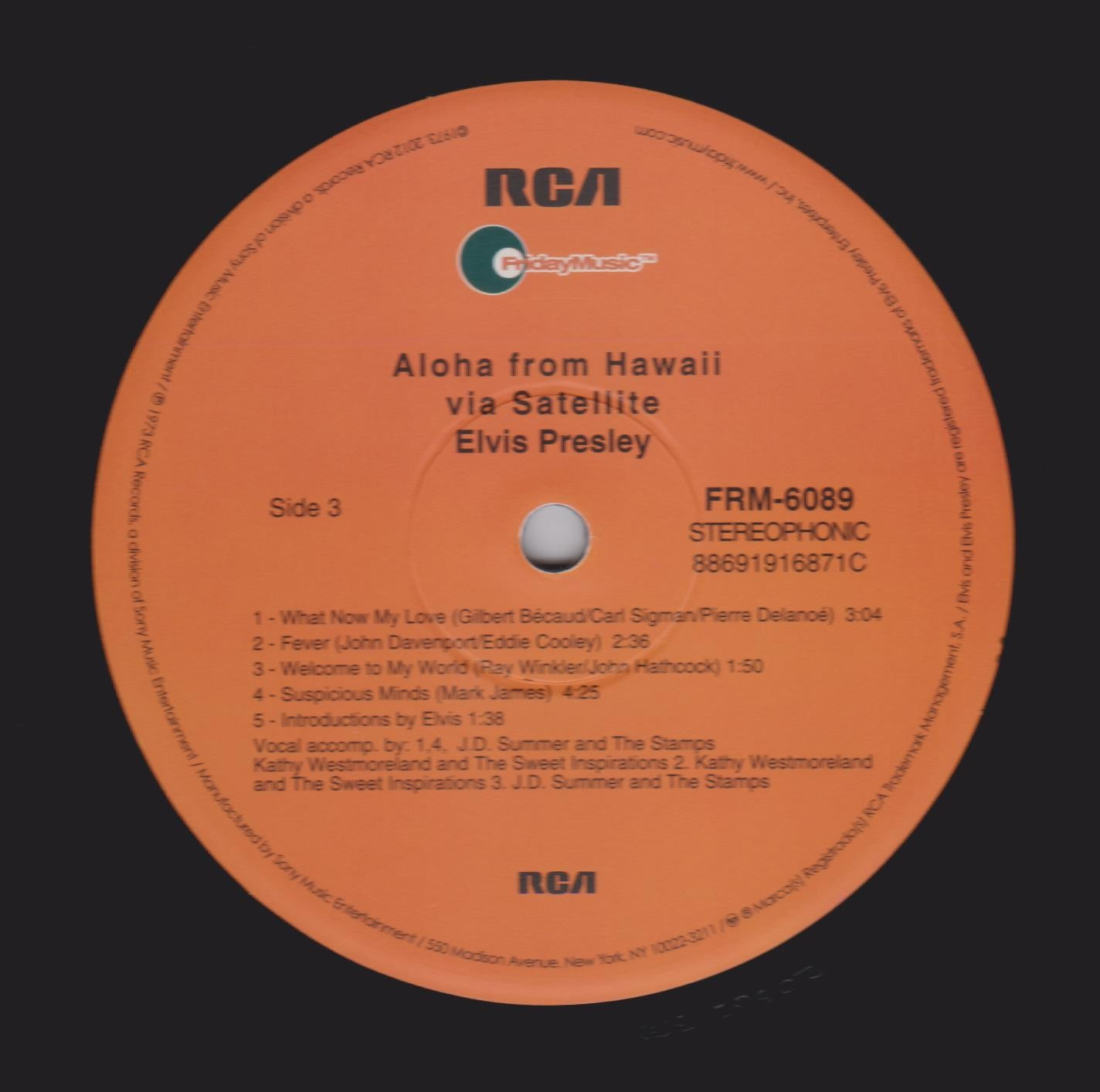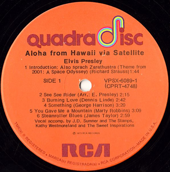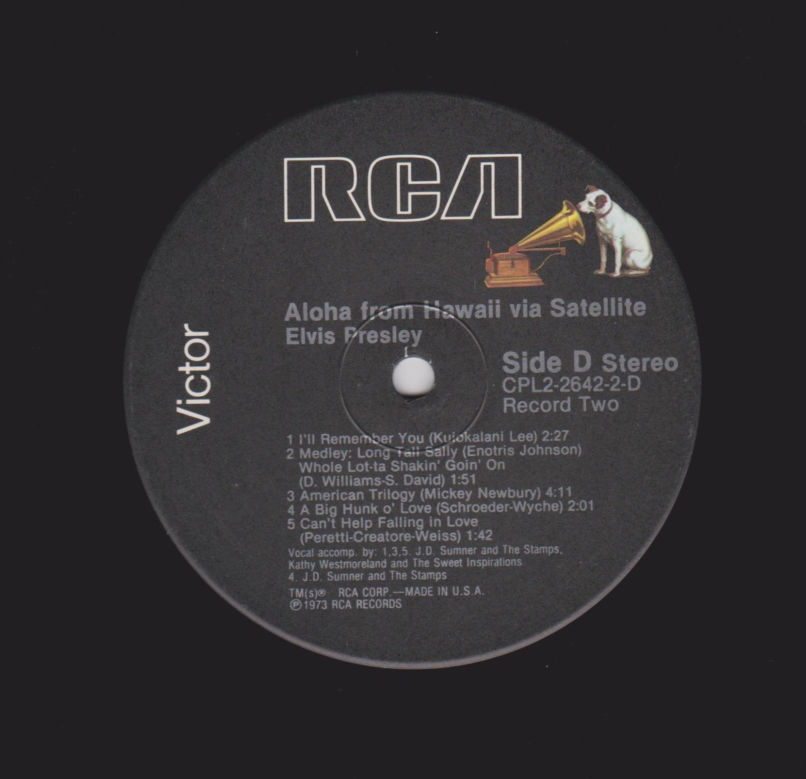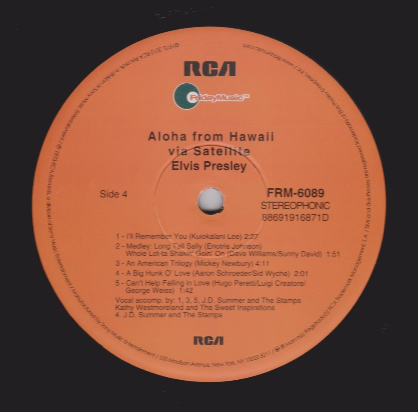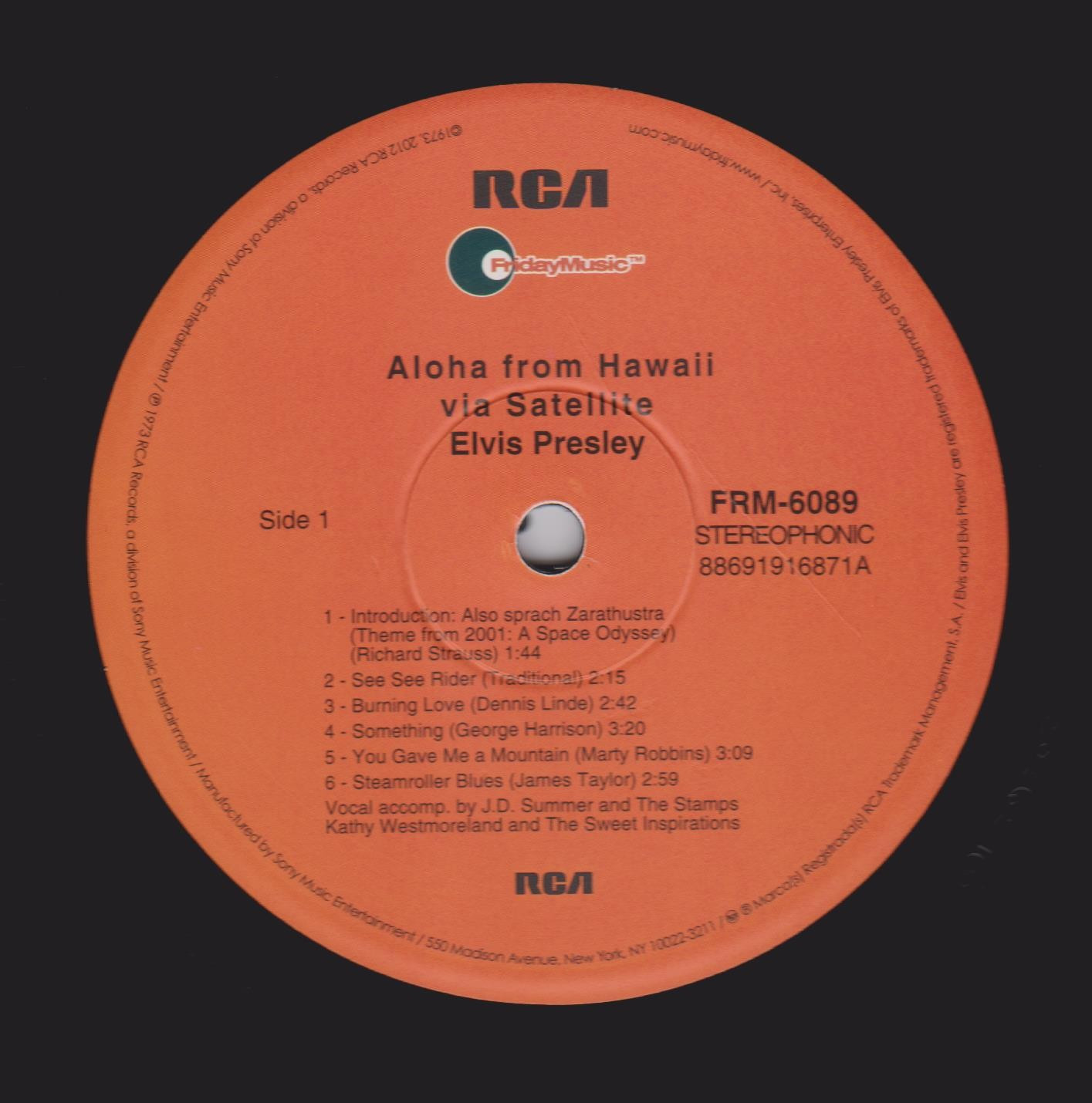 FROM HAWAII VIA SATELLITE (LP) (US) RCA VPSX 6089 Released: February 1973 Side 1 Introduction / Also Sprach Zarathustra * See See Rider * Burning Love * Something * You Gave Me A Mountain * Steamroller Blues * Side 2 My Way * Love Me * Johnny B. Goode * It's Over * Blue Suede Shoes * I'm So Lonesome I Could Cry * I Can't Stop Loving You * Hound Dog * Side 3 What Now My Love * Fever * Welcome To My World * Suspicious Minds * Introductions By Elvis * Side 4 I'll Remember You * Long Tall Sally / Whole Lotta Shakin' Goin' On * American Trilogy * Big Hunk O' Love * Can't Help Falling In Love * Closing Vamp * * Recorded: Honolulu International Centre,