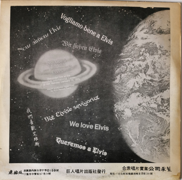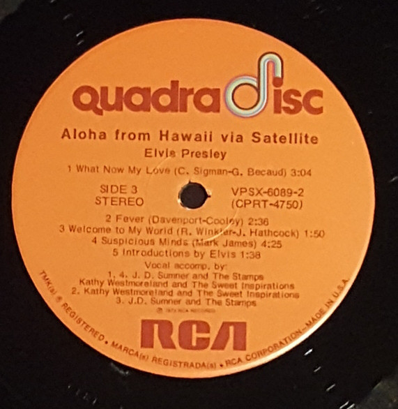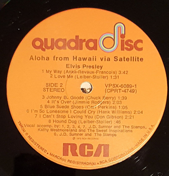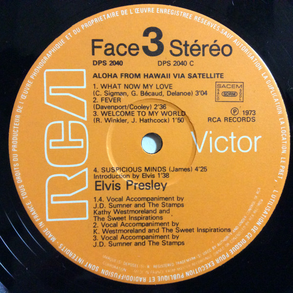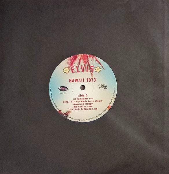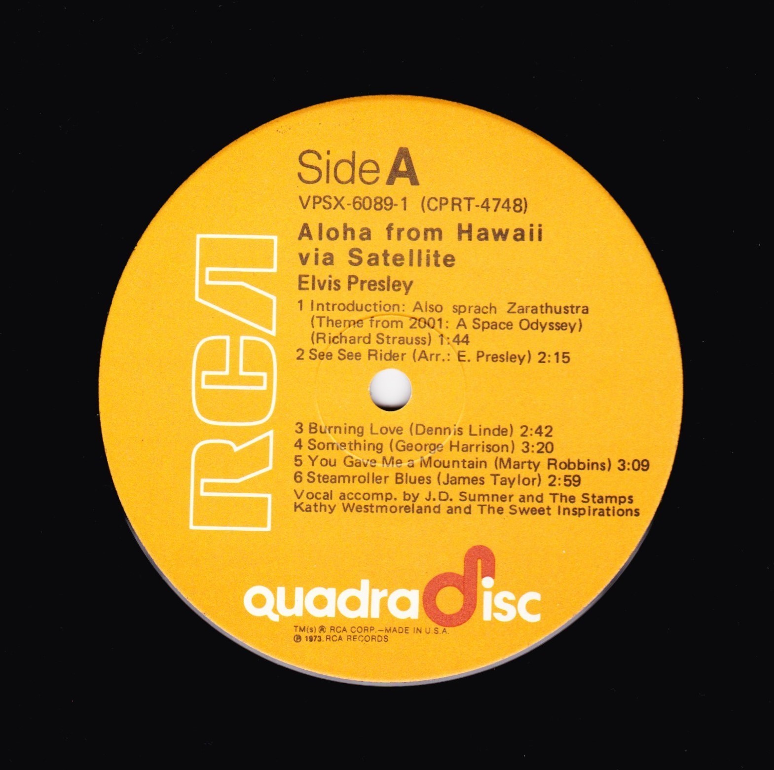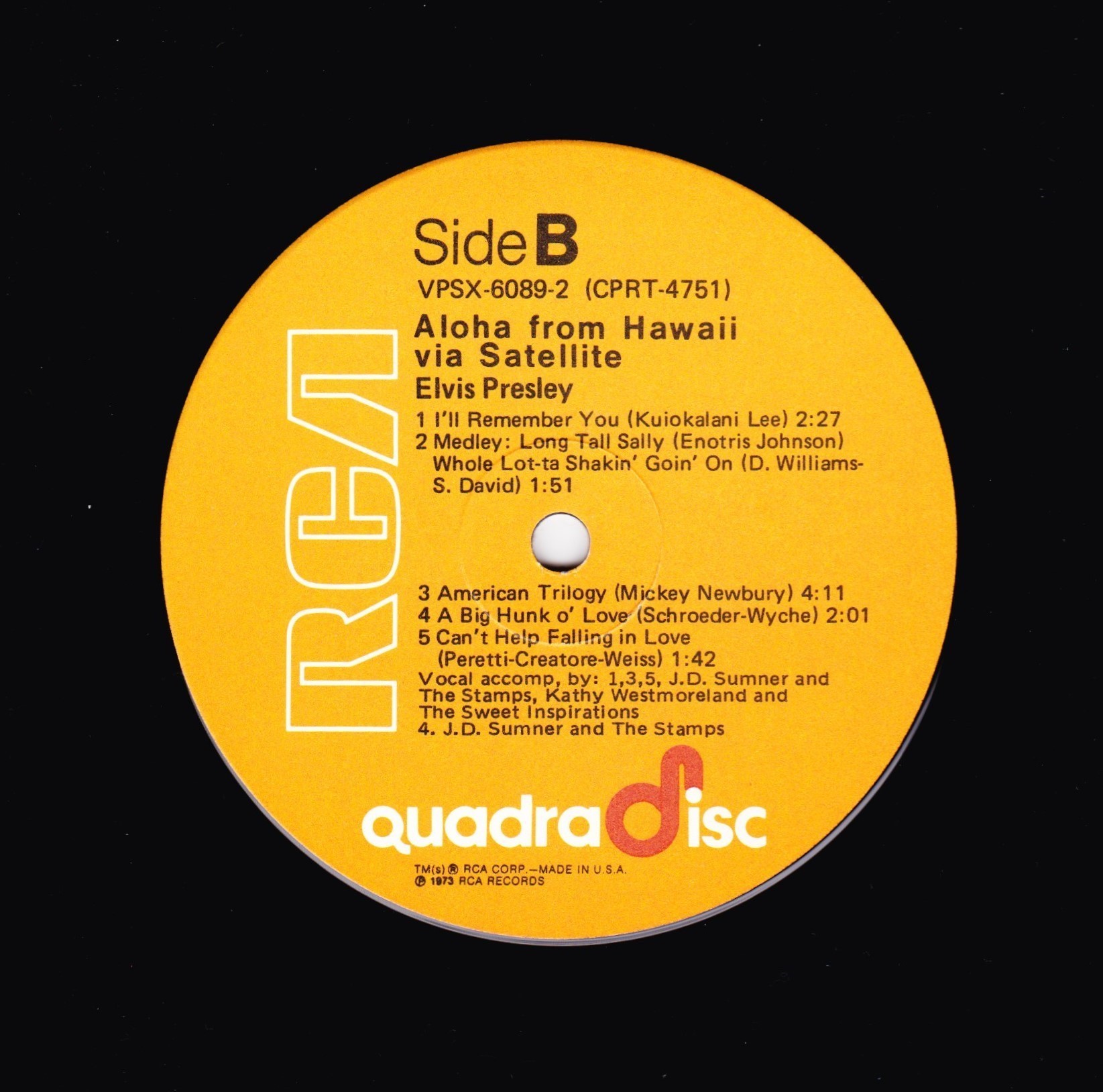 FROM HAWAII VIA SATELLITE (LP) (US) RCA VPSX 6089 Released: February 1973 Side 1 Introduction / Also Sprach Zarathustra * See See Rider * Burning Love * Something * You Gave Me A Mountain * Steamroller Blues * Side 2 My Way * Love Me * Johnny B. Goode * It's Over * Blue Suede Shoes * I'm So Lonesome I Could Cry * I Can't Stop Loving You * Hound Dog * Side 3 What Now My Love * Fever * Welcome To My World * Suspicious Minds * Introductions By Elvis * Side 4 I'll Remember You * Long Tall Sally / Whole Lotta Shakin' Goin' On * American Trilogy * Big Hunk O' Love * Can't Help Falling In Love * Closing Vamp * * Recorded: Honolulu International Centre,