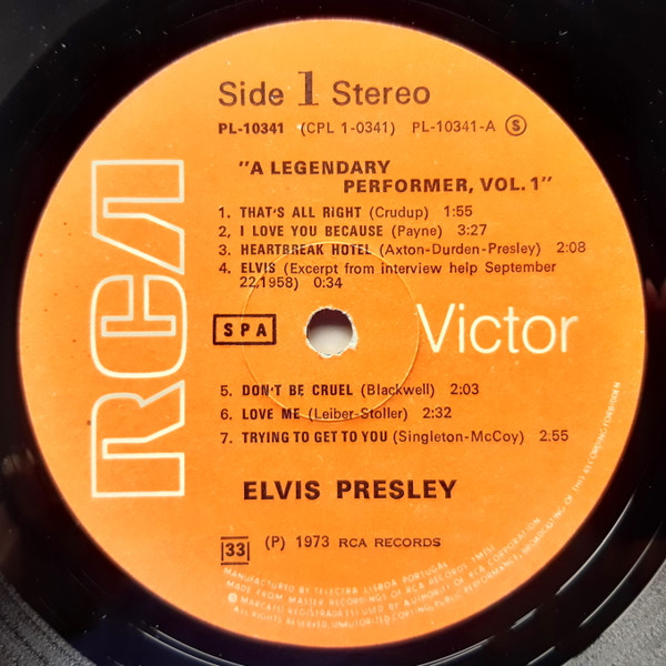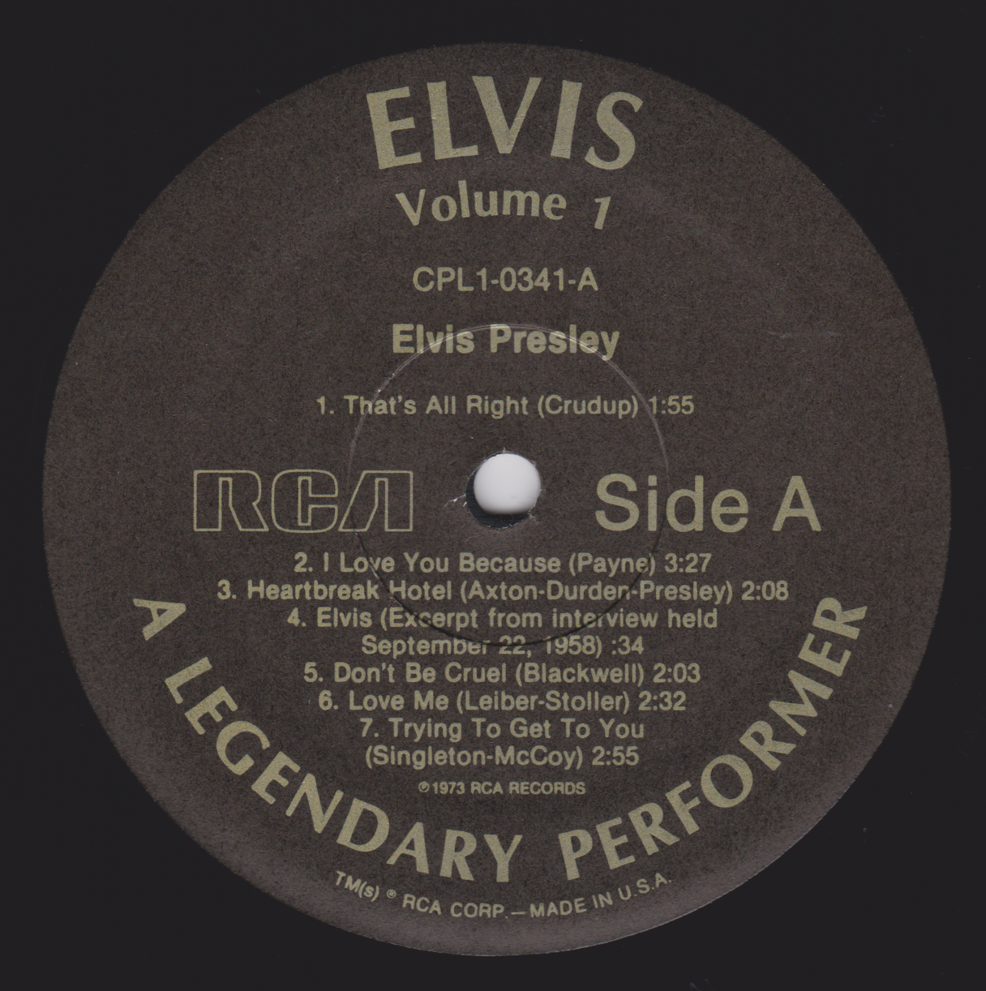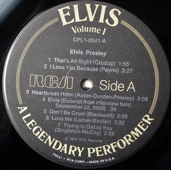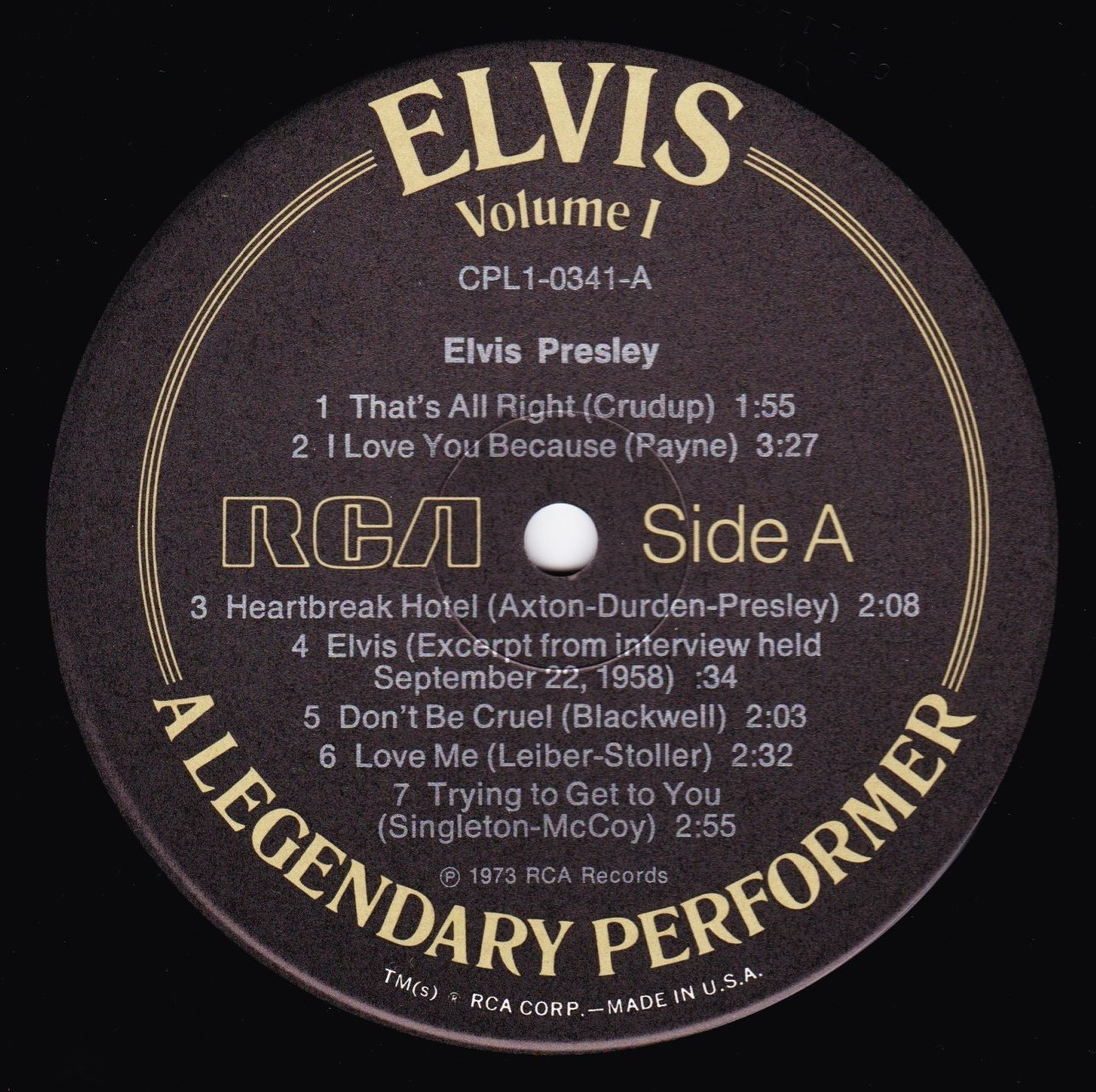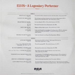 - A LEGENDARY PERFORMER, VOLUME 1 (LP) (US) RCA CPL1 0341 Released: November 1973 Side 1 That's All Right I Love You Because (Take 2) * Heartbreak Hotel Excerpt From "Elvis Sails" Don't Be Cruel Love Me *** Trying To Get To You *** Side 2 Love Me Tender Peace In The Valley Excerpt From "Elvis Sails" Fool Such As I Tonight's All Right For Love ** Are You Lonesome Tonight *** Can't Help Falling In Love *