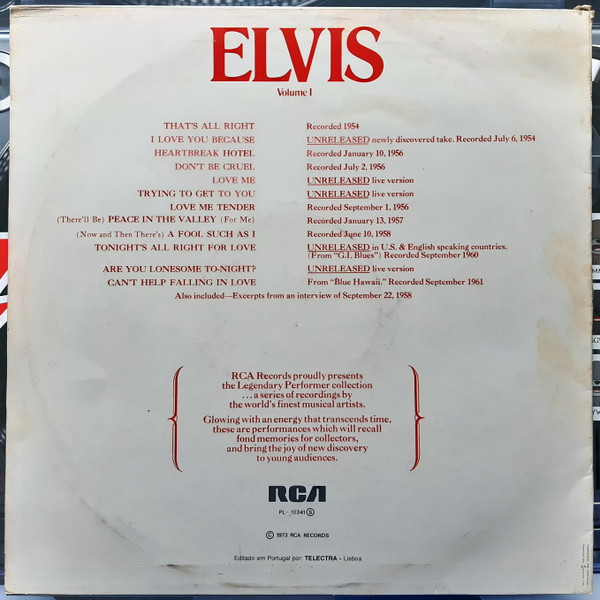 | Label: RCA – CPL 1-0341, Telectra Portugal – PL-10341 Format: Vinyl, LP, Compilation, Stereo Country: Portugal Released: 1973 Copyright © – RCA Records "RCA Records proudly presents the Legendary Performer collection ...a series of recordings by the world's finet musical artists. Editado em Portugal por: TELECTRA - Lisboa Matrix / Runout (A side): PL-10341A |