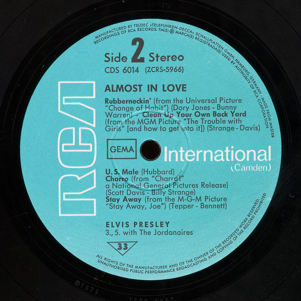 IN LOVE (LP) (US) RCA Camden CAS 2440 Released: March 1973 This was a re-release of the 1970 album of the same name with the only difference being the replacement of "Stay Away, Joe" with "Stay Away". |
