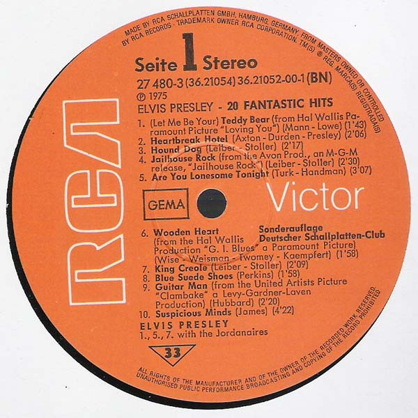 | Elvis Presley – 20 Fantastic Hits Label: