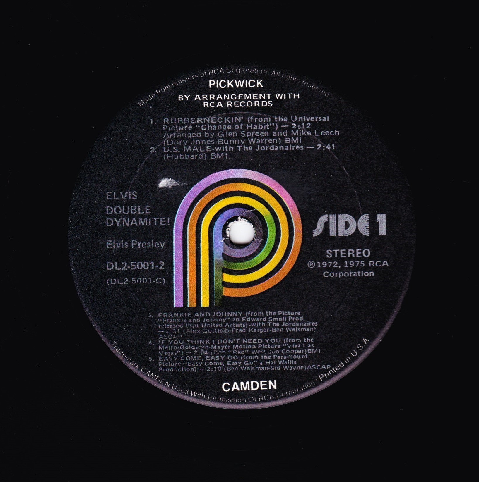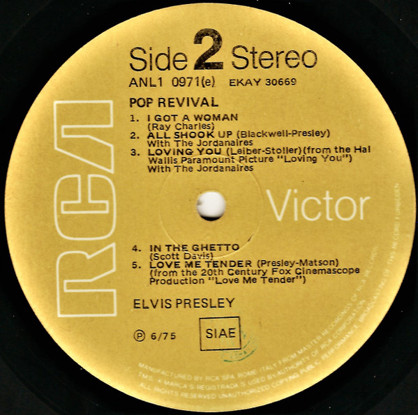 top left under Elvis. Catalogue number bottom right. |