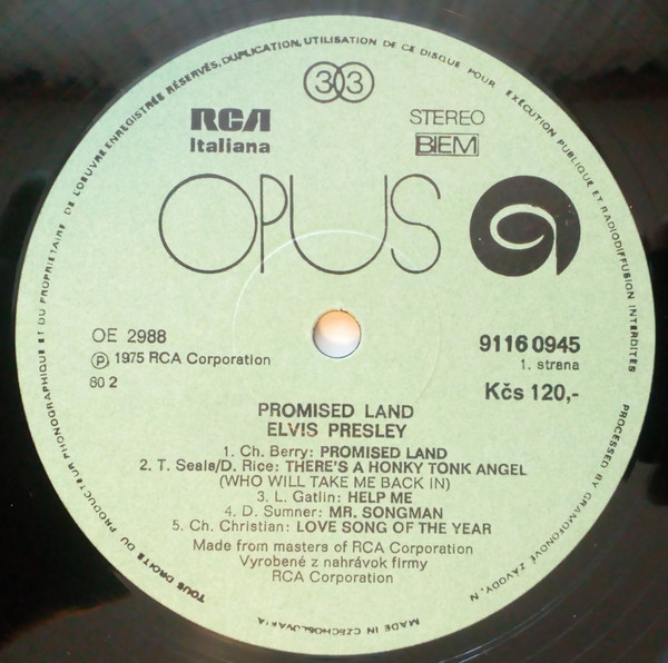 0945 Format: Vinyl, LP, Album, Reissue, Green labels Country: Czechoslovakia Released: 1980 Copyright © – RCA Corporation Made from masters of RCA Corporation Matrix / Runout (Label A): OE 2988 |