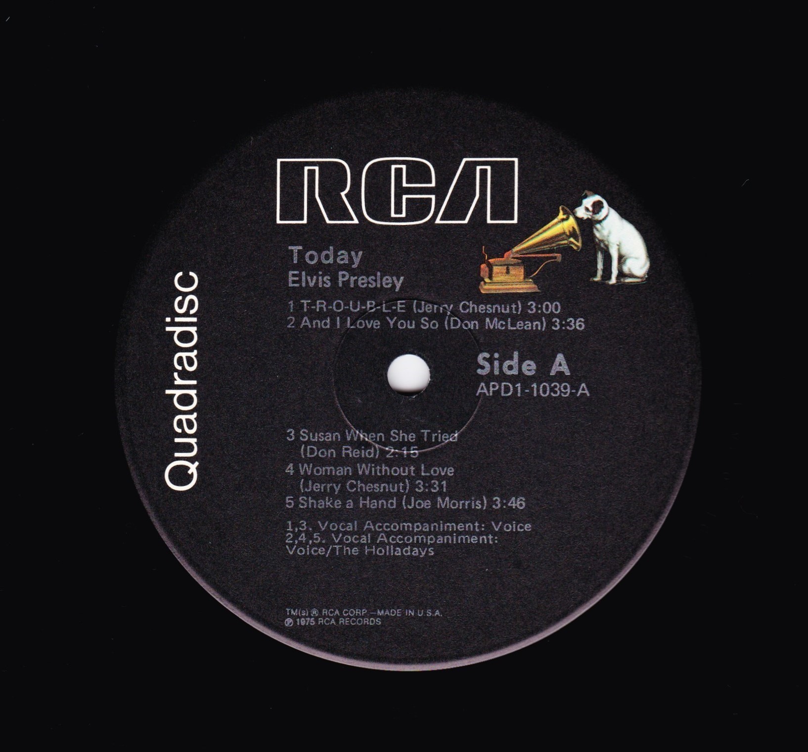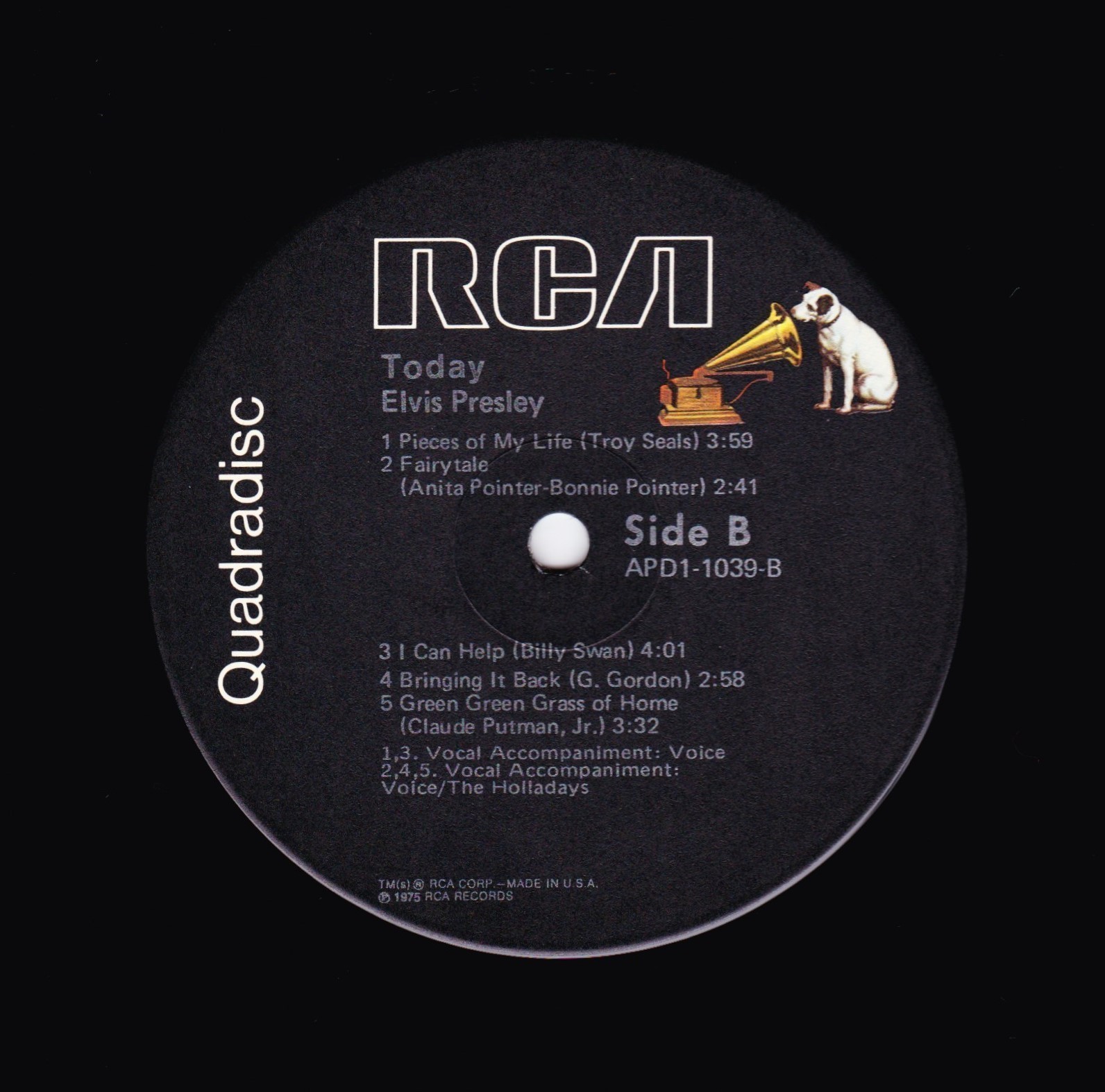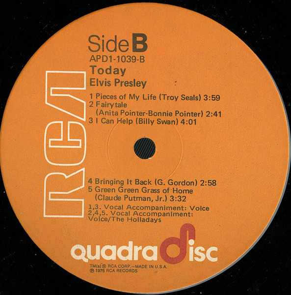 | Label: RCA – APD1-1039 (AFL1-1039 from 1977 Reissue) Format: Vinyl, LP, Album, Quadraphonic Country: US Released: 1975 Phonographic Copyright ℗ – RCA Records Accompanied By [Vocal] – The Holladays (tracks: A2, A4, A5,