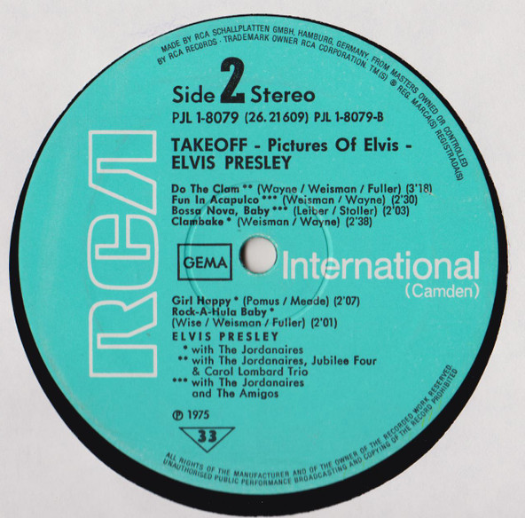 RCA Records Limited edition of 2500 numbered copies. BMI : A1 to A4, B3, B4, B5 Rights Society: BMI |