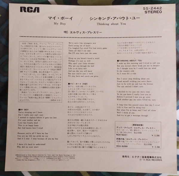 | Label: RCA – SS-2442, RCA – PB-10191 Format: Vinyl, 7", 45 RPM, Single, Promo, Stereo Country: Japan Released: 1975 Manufactured By – Victor Musical