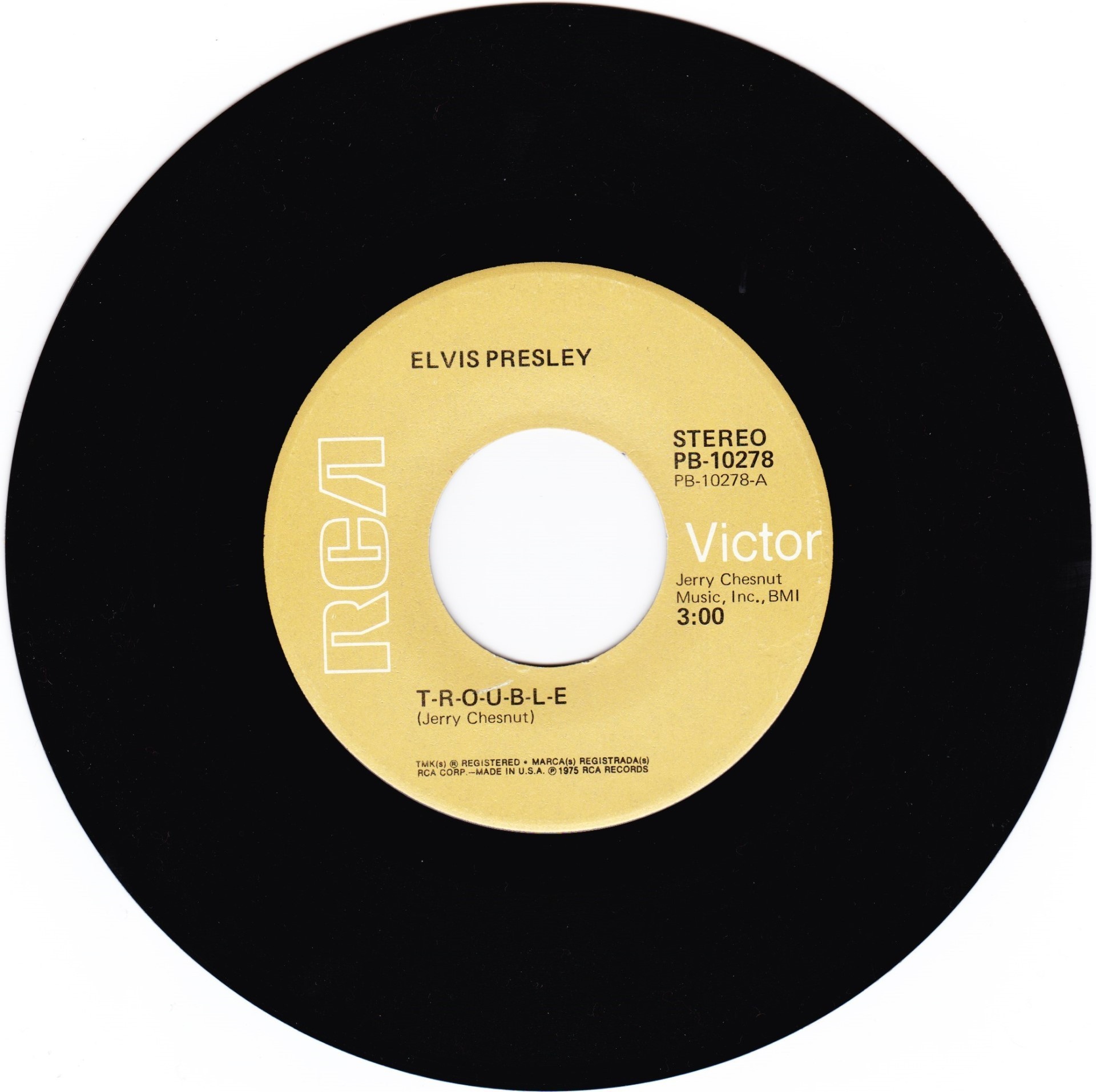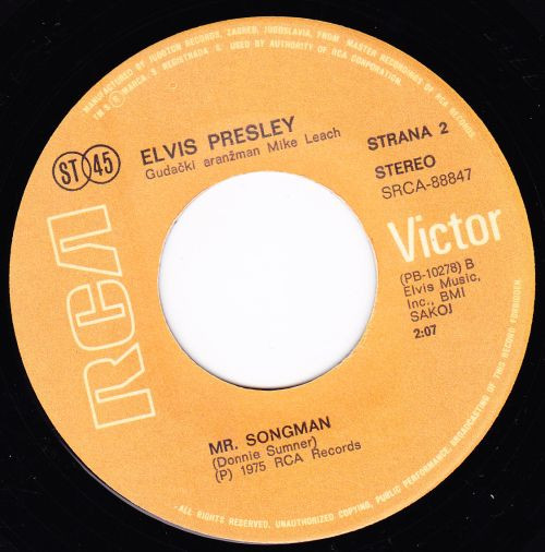 Music, Inc. Side A: Recorded March 10,1975 Different version : Elvis Presley - T-R-O-U-B-L-E / Mr. Songman is a SHELLY pressing. Rights Society: BMI |