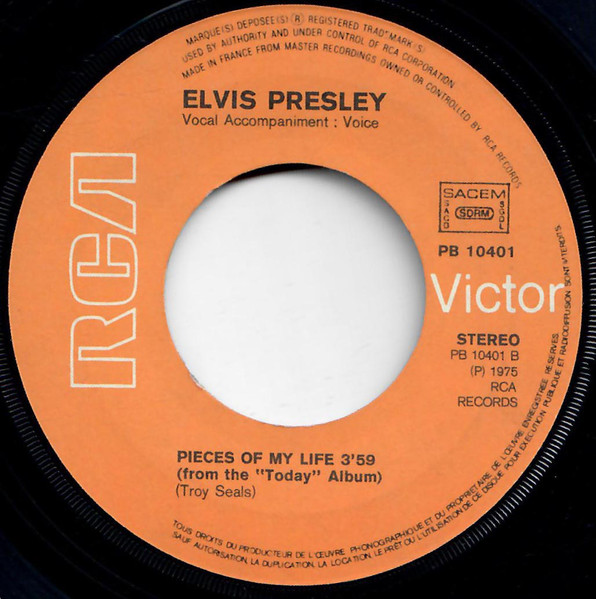 Pieces Of My Life Brief History : Bringing It Back was recorded March 11th, 1975 at RCA Studios, Hollywood & Pieces Of My Life was recorded the following day at the same location. Front Cover : Picture Sleeve |