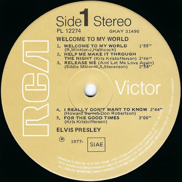 | Elvis Presley Label: RCA Victor – PL 42298 Side 1: Side 2: Side 3: Side 4: Side 5: Side 6: Phonographic Copyright