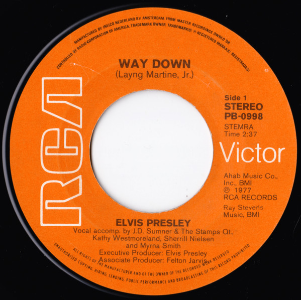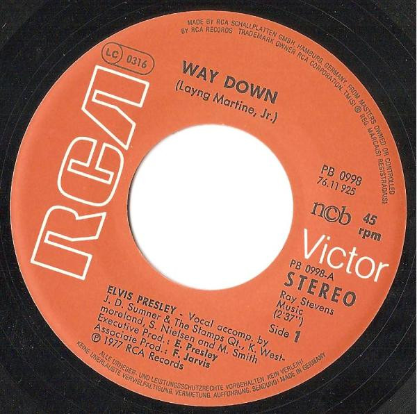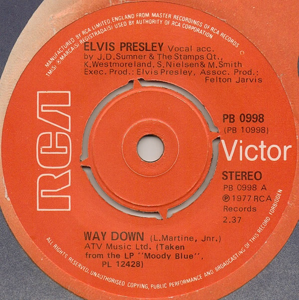 Way Down * Brief History : Both songs were recorded between October 29th & 30th, 1976 at Graceland, Memphis. Front Cover : Picture Sleeve. |