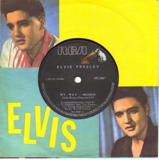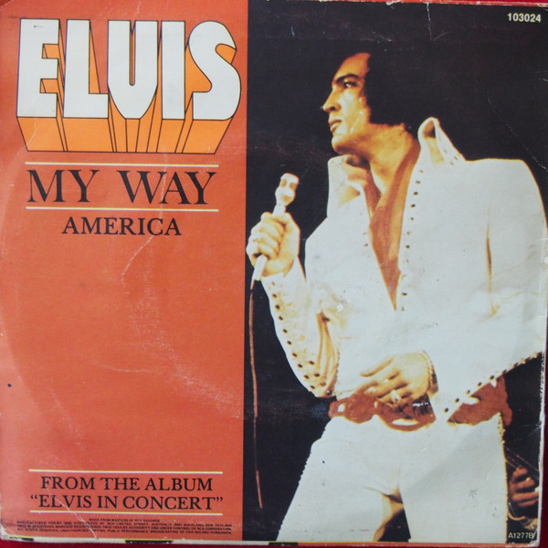 My Way (From Elvis In Concert 21/6/77) Brief History : My Way was recorded either June 19th or June 21st, 1977 at either Omaha or Rapid City live. America has a possible recording date in Las Vegas either December 1975 or 1976 live. Front Cover : Picture Sleeve. |