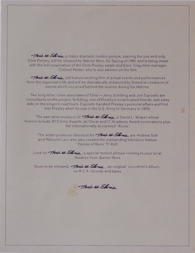 Front Cover : Photo of Elvis. Title top right. Catalogue