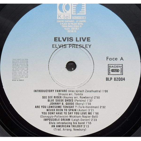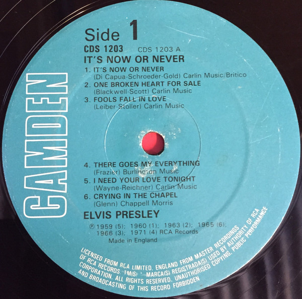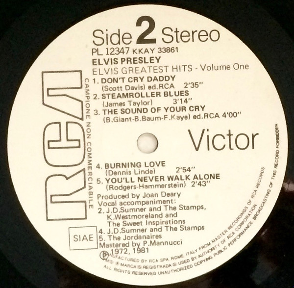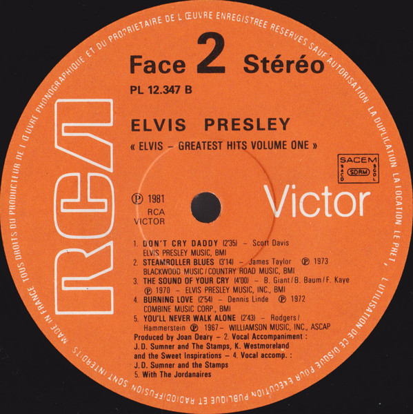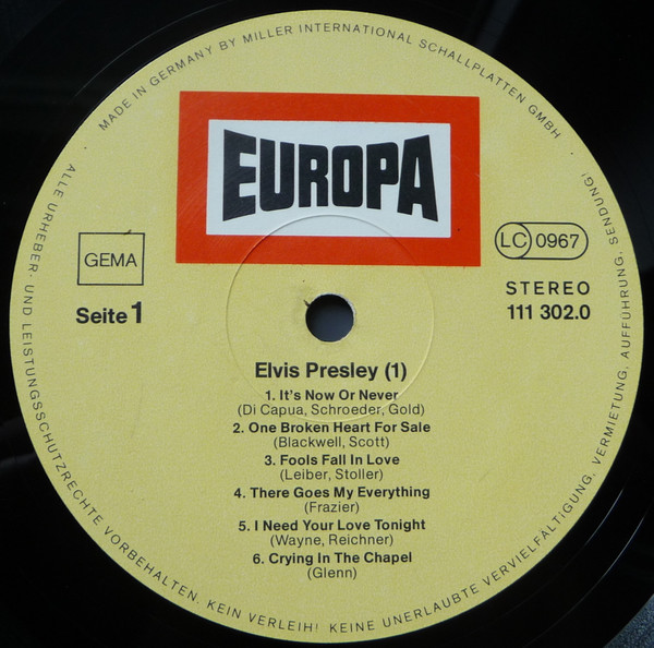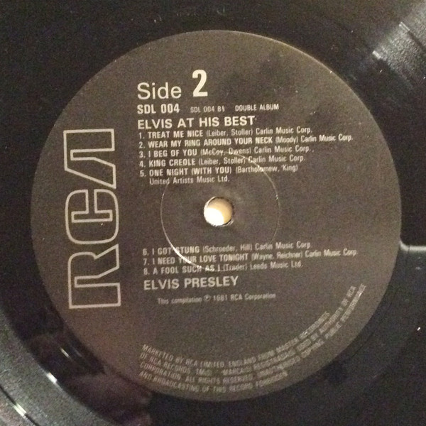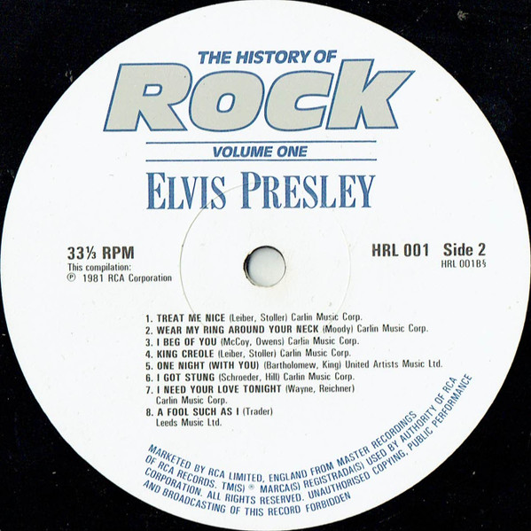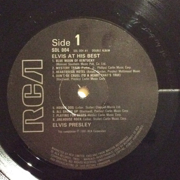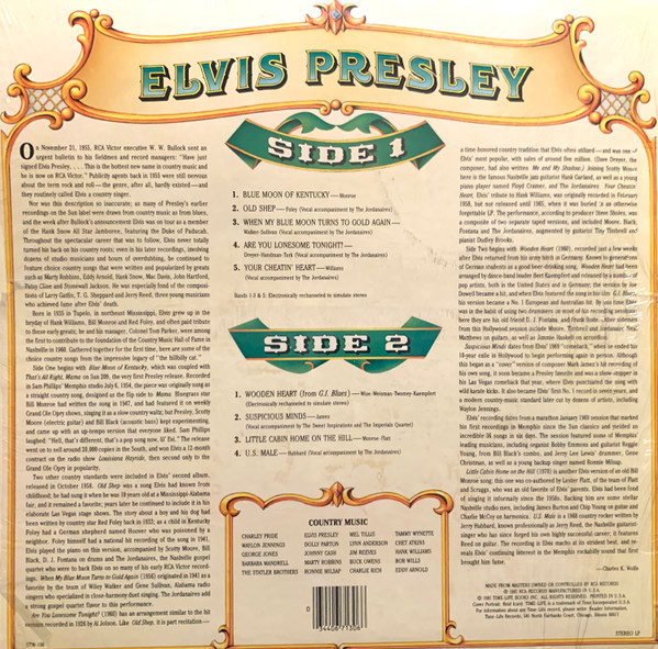 Front Cover : Photo of Elvis. Title top right. Catalogue number