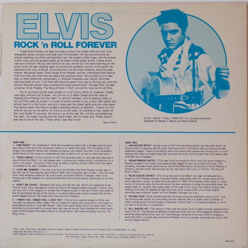 Rear Cover : Photo of Elvis. Catalogue number bottom right.
