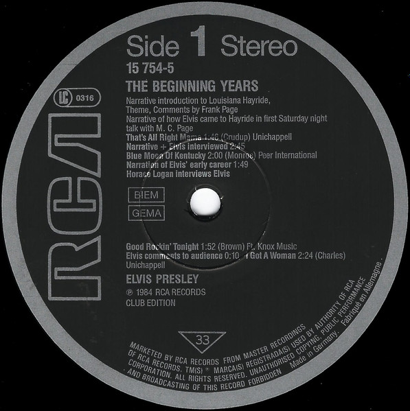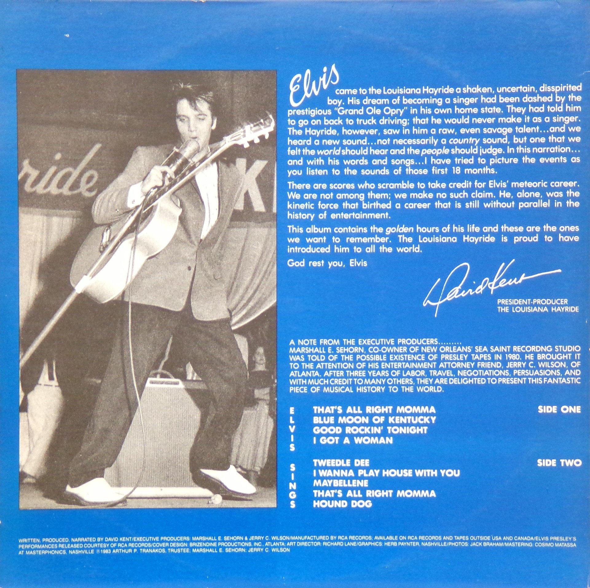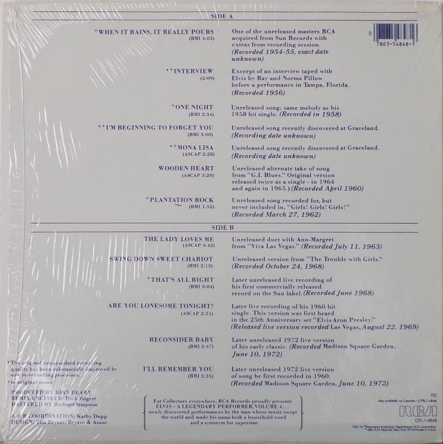 Rear Cover : Mock up photo of Elvis. Song titles across